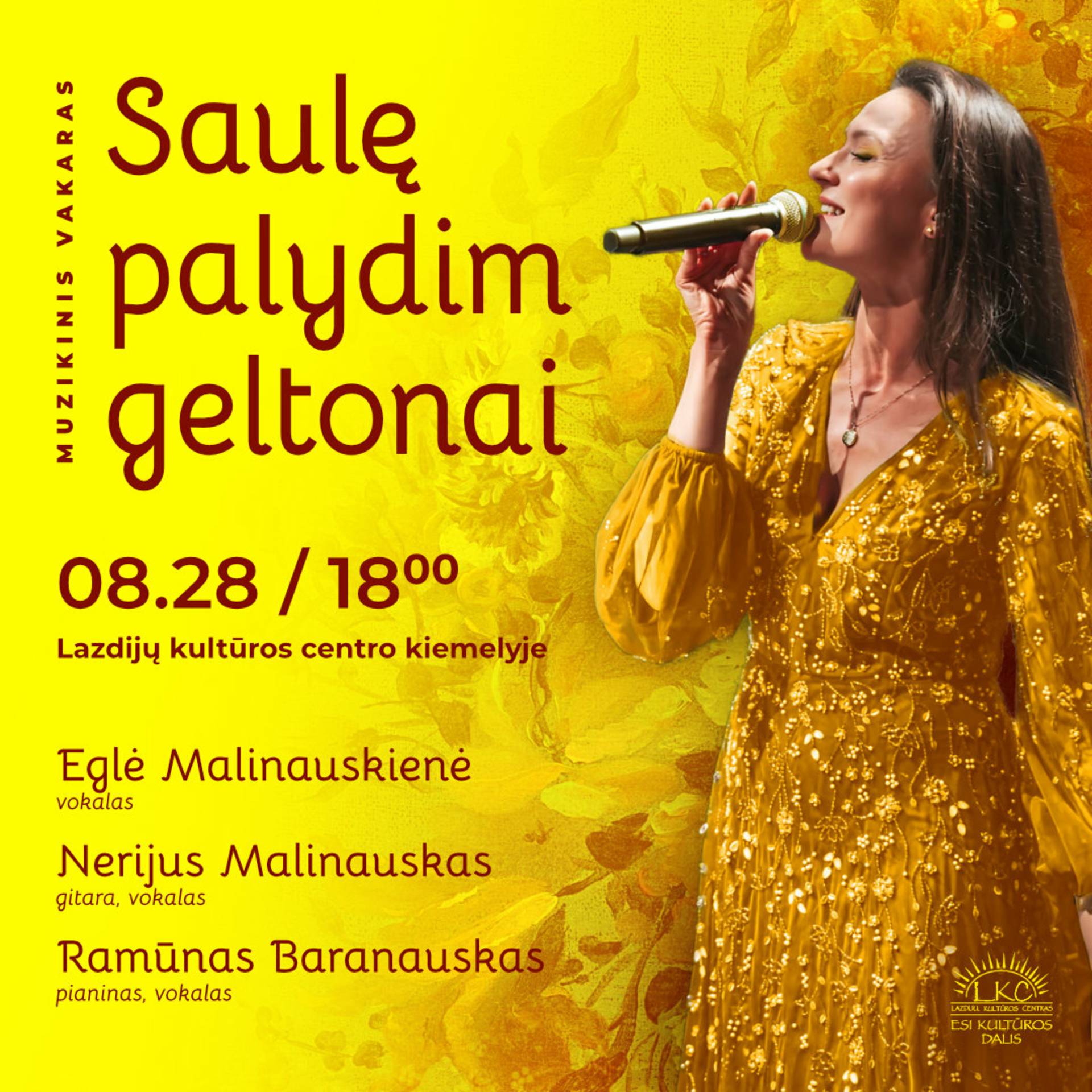 „Saulė palidim geltonai” to tradycyjny wieczór, który rozgrzewa duszę nastrojową muzyką i żółtymi barwami. W tym roku na dziedzińcu Centrum Kultury w Łoździejach posłuchamy: