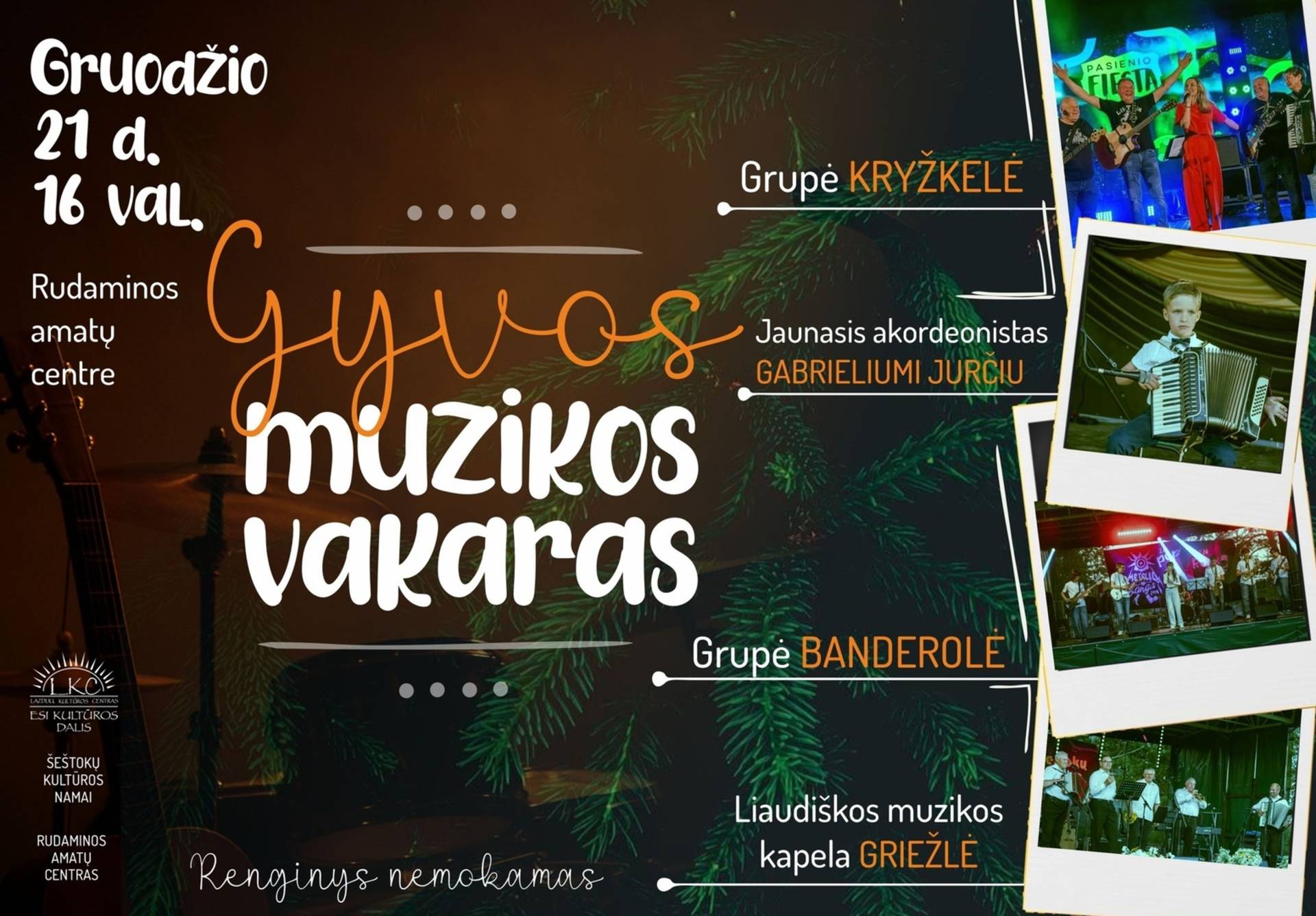 Zapraszamy na wieczór muzyki na żywo, który odbędzie się 21 grudnia o godzinie 16:00 w Rudamina Craft Center.