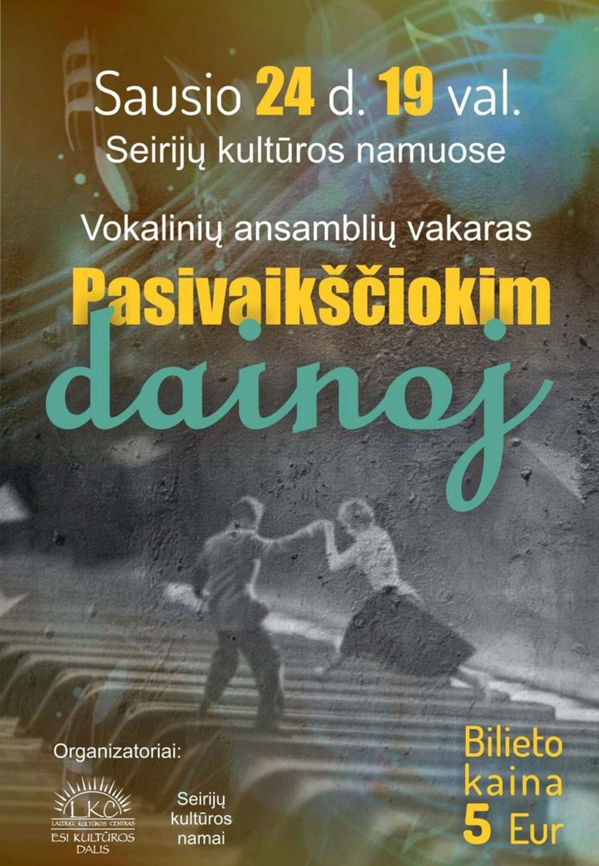 Zapraszamy na wspaniały wieczór muzyczny z zespołami wokalnymi z powiatu olickiego i Druskiennik. Bilety można nabyć w Domu Kultury Seirijui. Cena biletu wynosi 5 EUR.