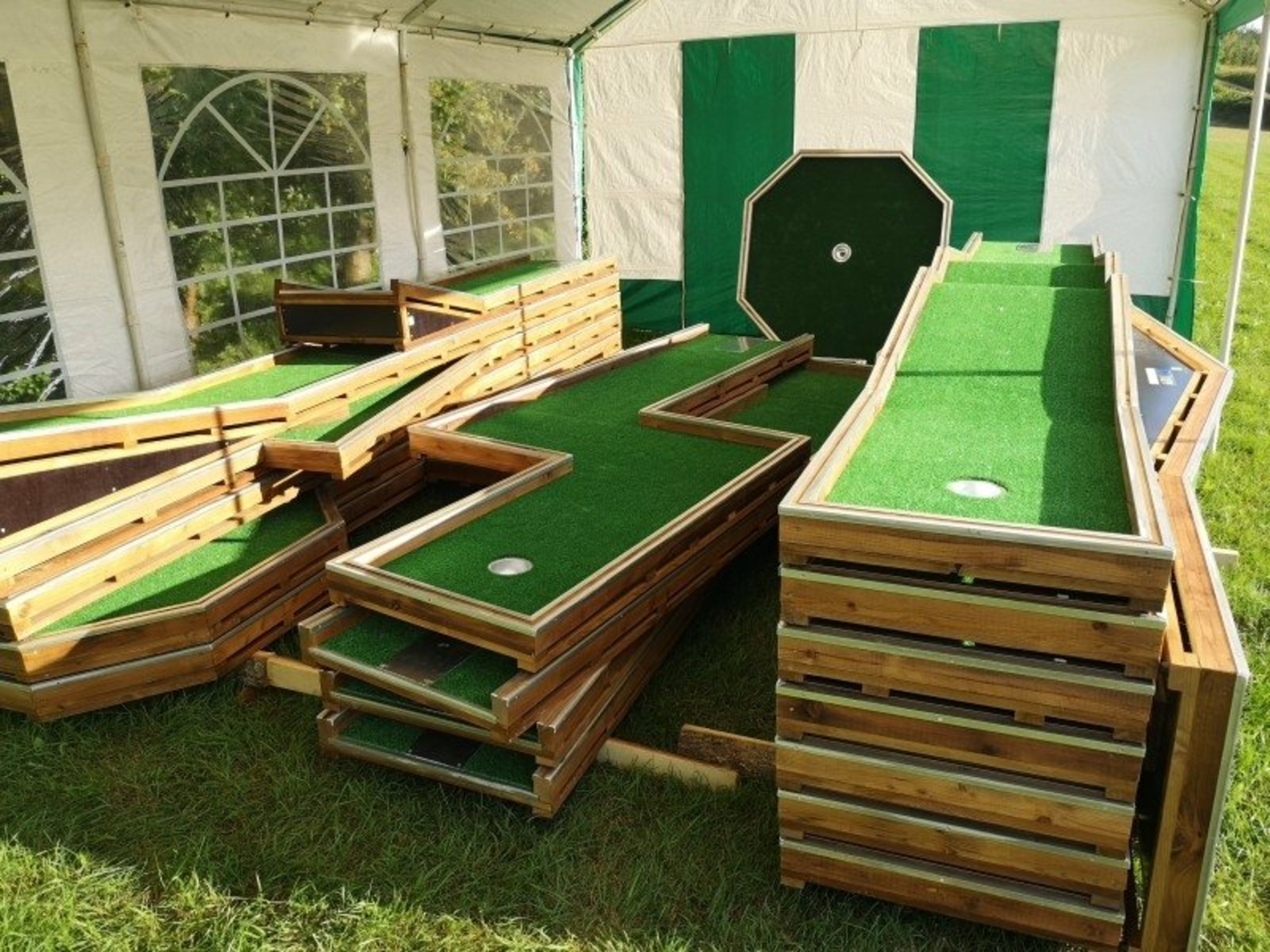 Kadangi Mini golfas yra mobilus, jį galima pristatyti ir į Jūsų privačią teritoriją, sodybą. Jį galima išsinuomoti įvairių renginių, švenčių metu. Minimalus nuomojamų konfigūracijų skaičius - 6. Vieno takelio kaina - 20€+ atvežimas.