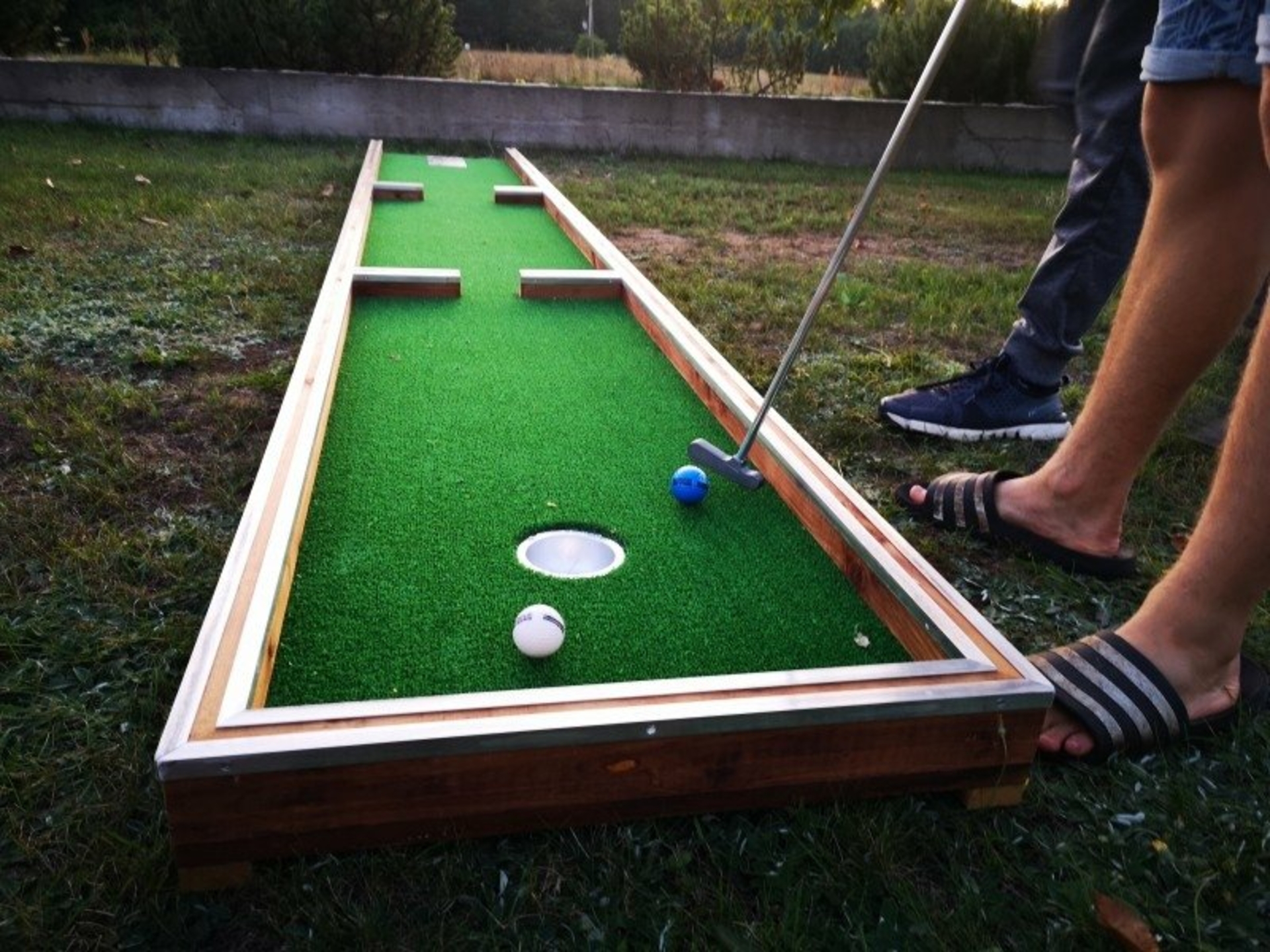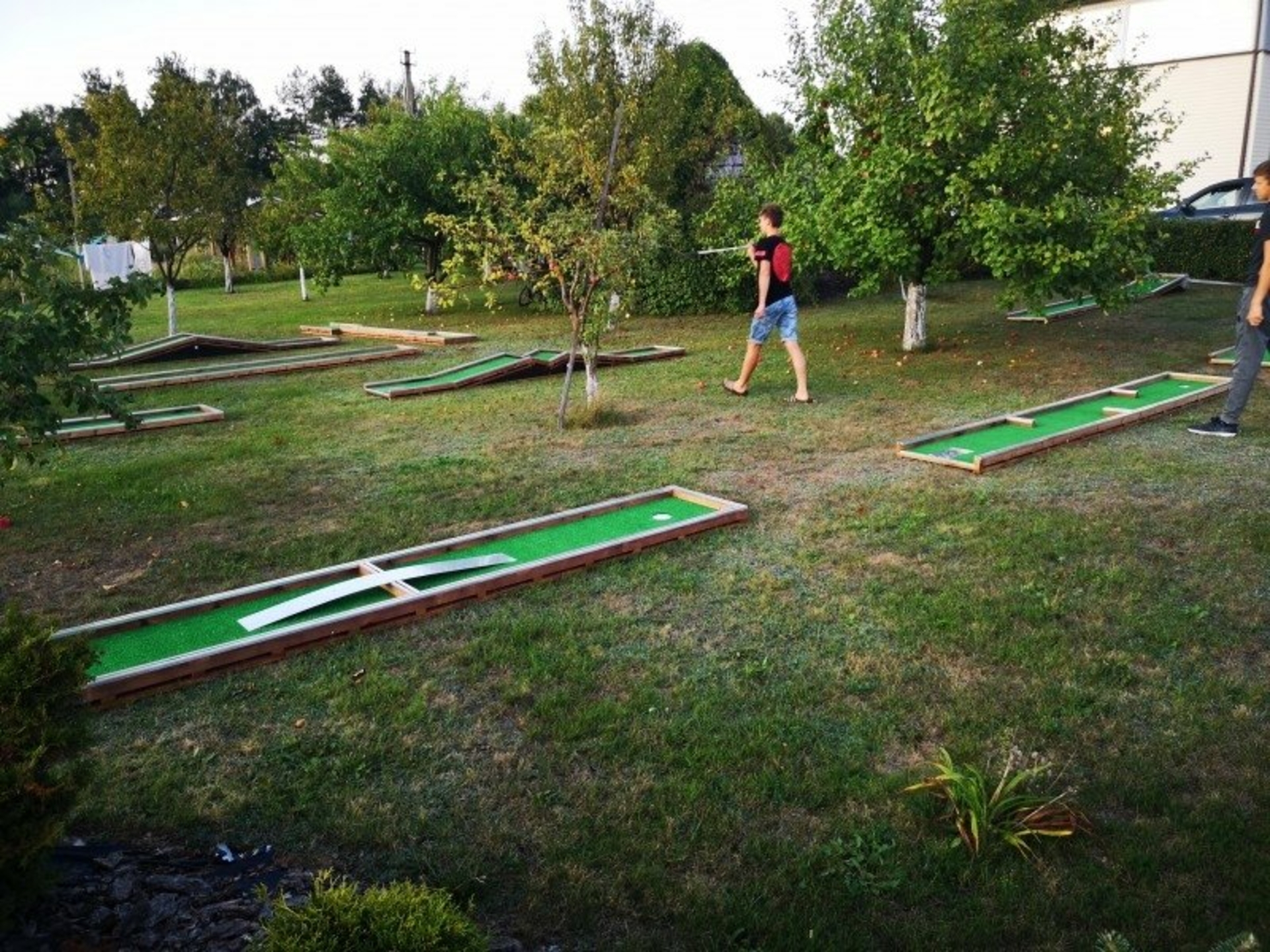 Mini golfas - tai puikus, visai šeimai tinkantis žaidimas gamtoje. Šis žaidimas neturi jokio amžiaus apribojimo, jam nėra blogo oro. Taisyklės paprastos, todėl kiekvienas, kuris nori išmėginti savo gabumus, tobulinti įgūdžius, smagiai leisti laiką gamtoje su šeima, draugų kompanija gali rinktis mini golfo pramogą. 18 skirtingų konfigūracijų išdėstoma tiesiog ant pievutės. Jūs gaunate žaidimo lazdas, kamuoliukus ir galite žaisti. Žaidėjai gali žaisti kiekvienas už save arba pasiskirstyti komandomis, todėl šis žaidimas gali tapti rungtyniavimu, azartu. Šiam žaidimui nereikia jokio fizinio pasirengimo, o įgūdžiai atsiranda bežaidžiant. Svarbiausia susikaupimas, gera strategija ir puiki nuotaika.