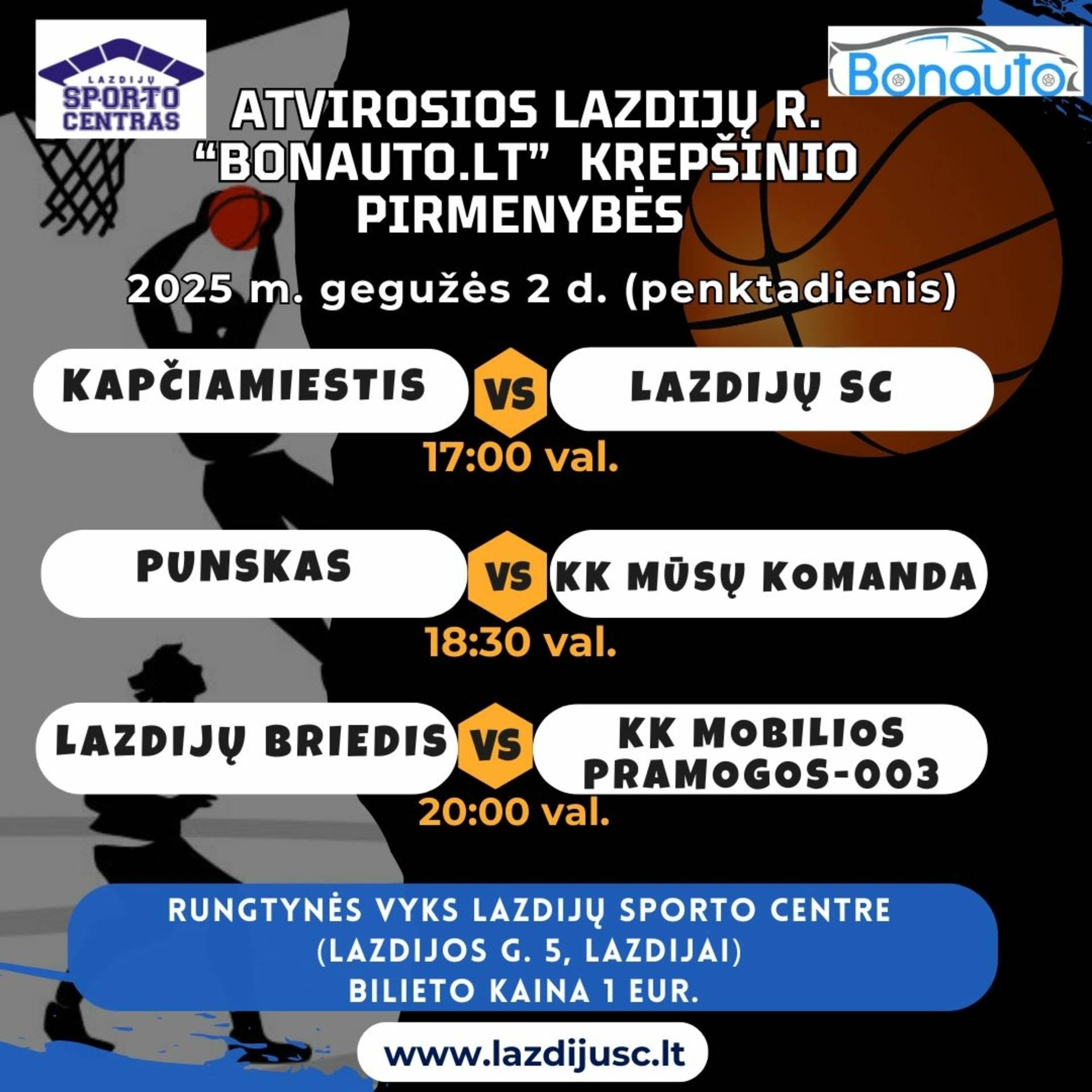 DĖMESIO! Pasižymėkite kalendoriuje gegužės 2 d. , juk būtina atvykti į atvirąsias Lazdijų r. "Bonauto.lt" krepšinio pirmenybes. Kviečiame stebėti varžybas ir palaikyti savo komandas!!