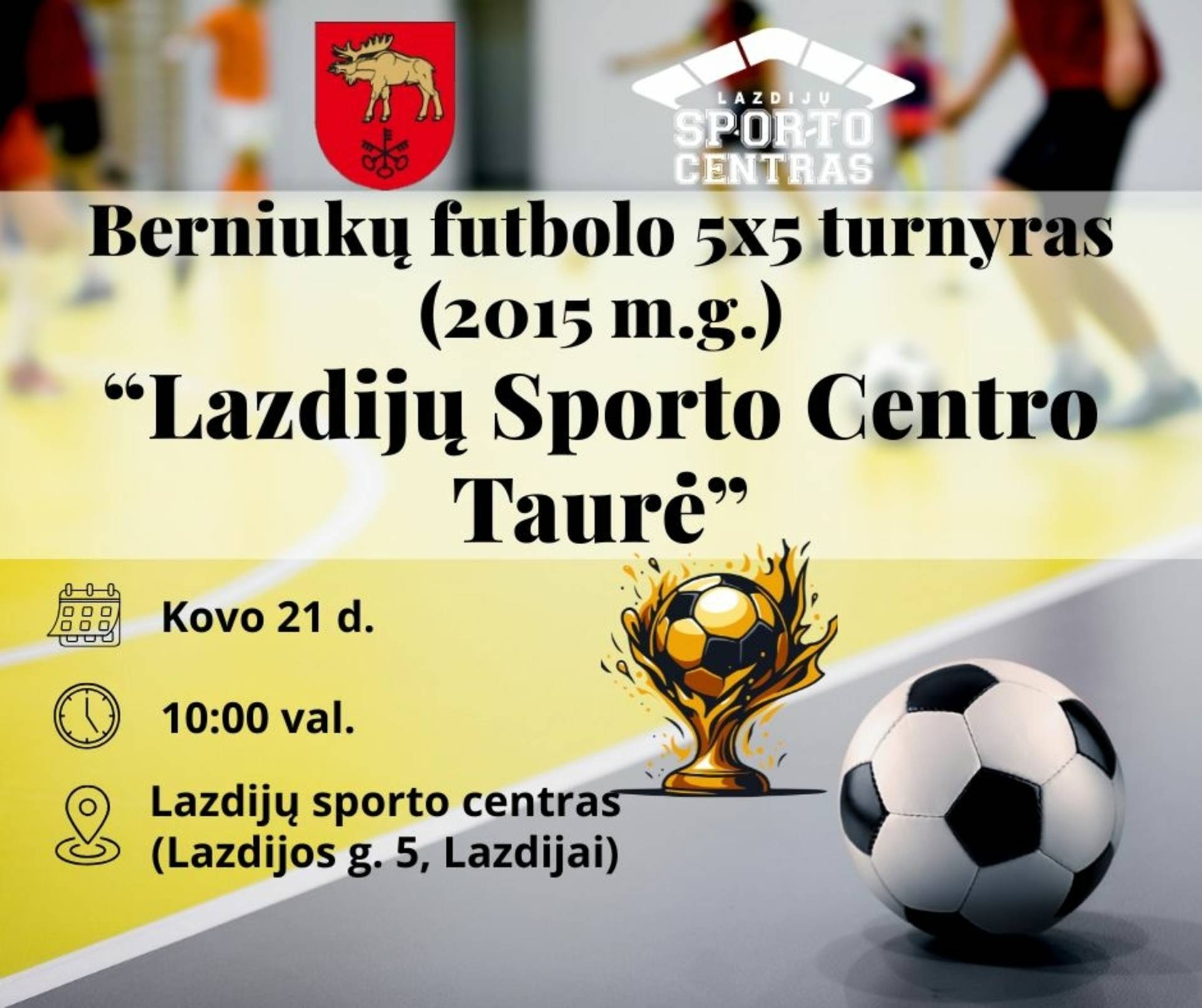 Kviečiame visus futbolo mėgėjus ir sirgalius atvykti į berniukų 5x5 futbolo turnyrą. „Lazdijų sporto centro taurė“ žada daug emocijų, azarto ir gražių įvarčių!