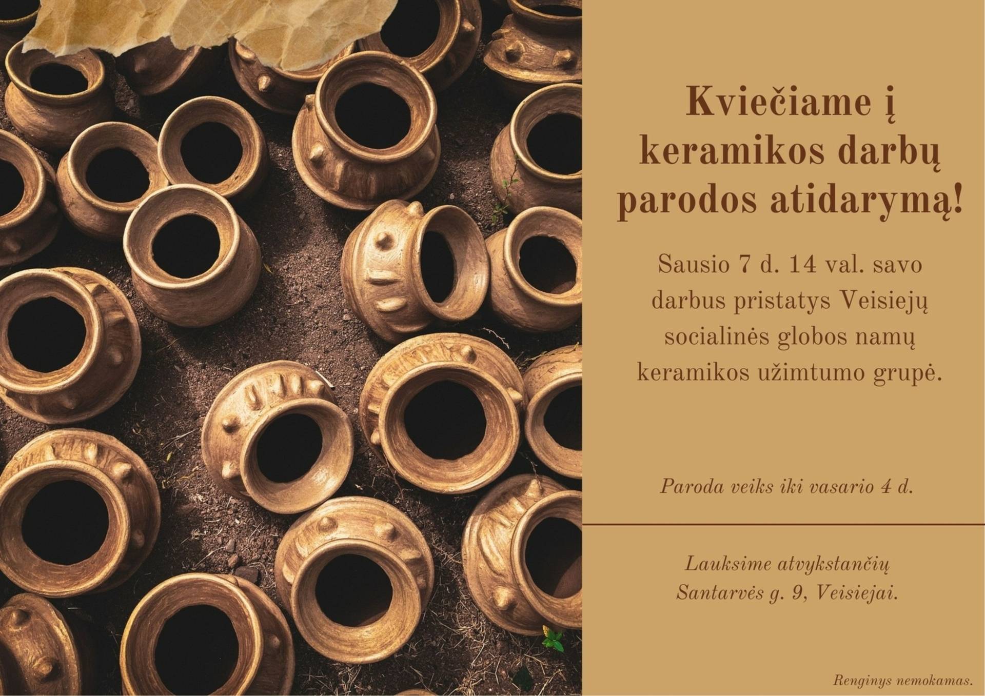 Sausio 7 d. 14 val. savo darbus pristatys Veisiejų socialinės globos namų keramikos užimtumo grupė.