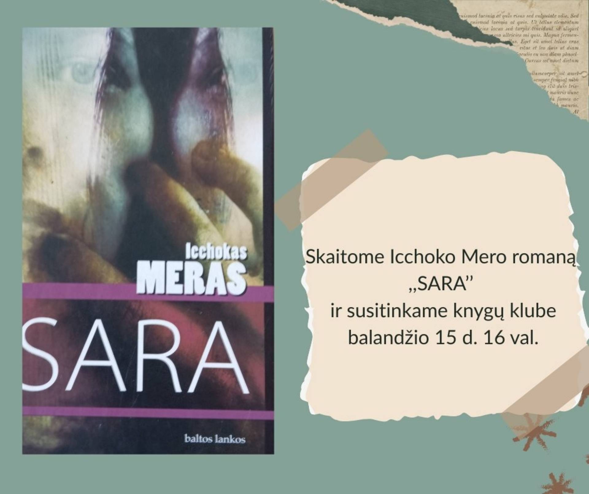 Skaitome Icchoko Mero romaną „SARA” ir susitinkame knygų klube balandžio 15 d. 16 val.