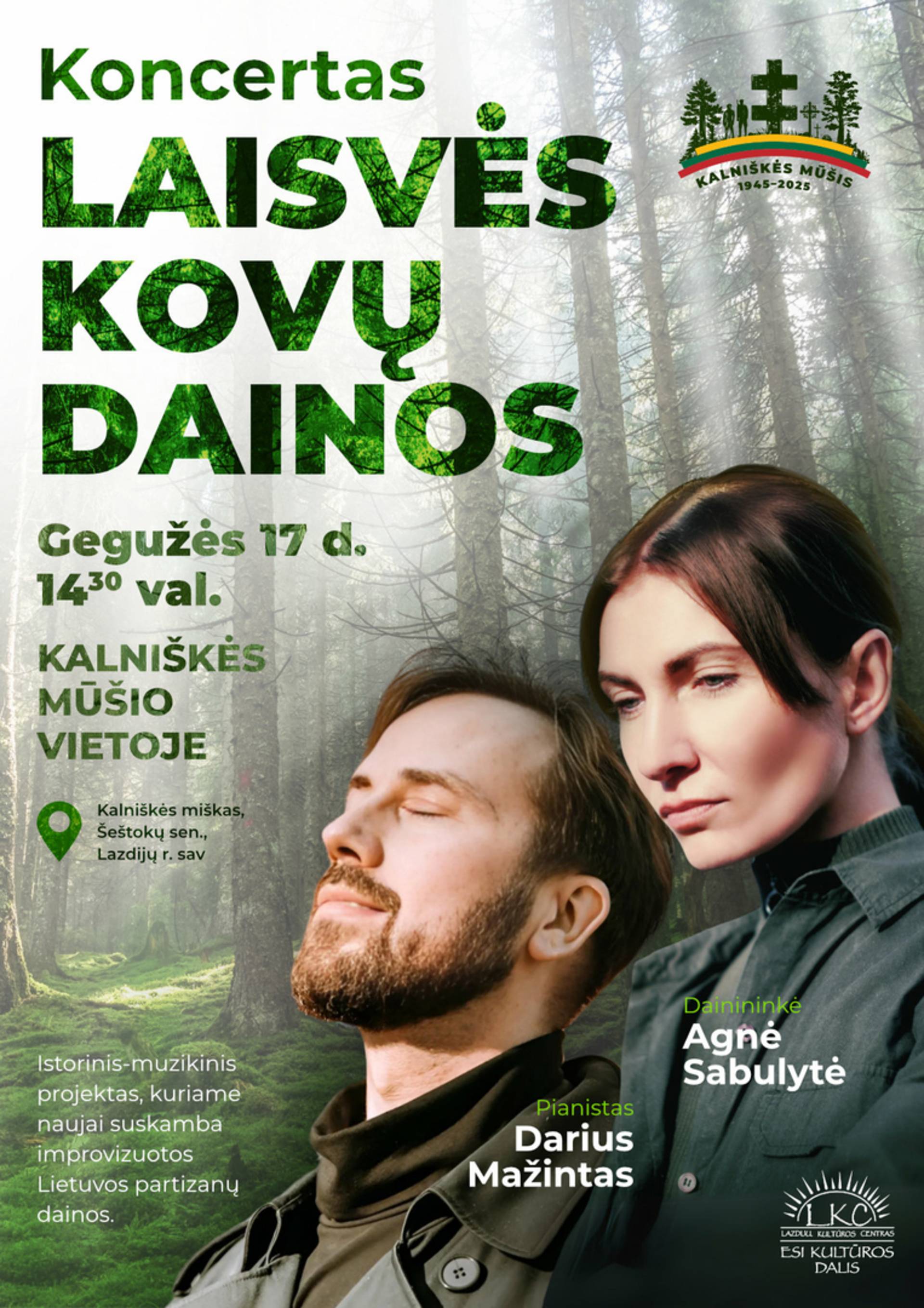 Profesionalūs Lietuvos muzikai – dainininkė Agnė Sabulytė ir pianistas Darius Mažintas susijungia istoriniam-muzikiniam projektui, kuris siekia išsaugoti laisvės kovų ir kovotojų atminimą, žadinti pilietinį sąmoningumą per partizanų istoriją dabartinių karų kontekste.