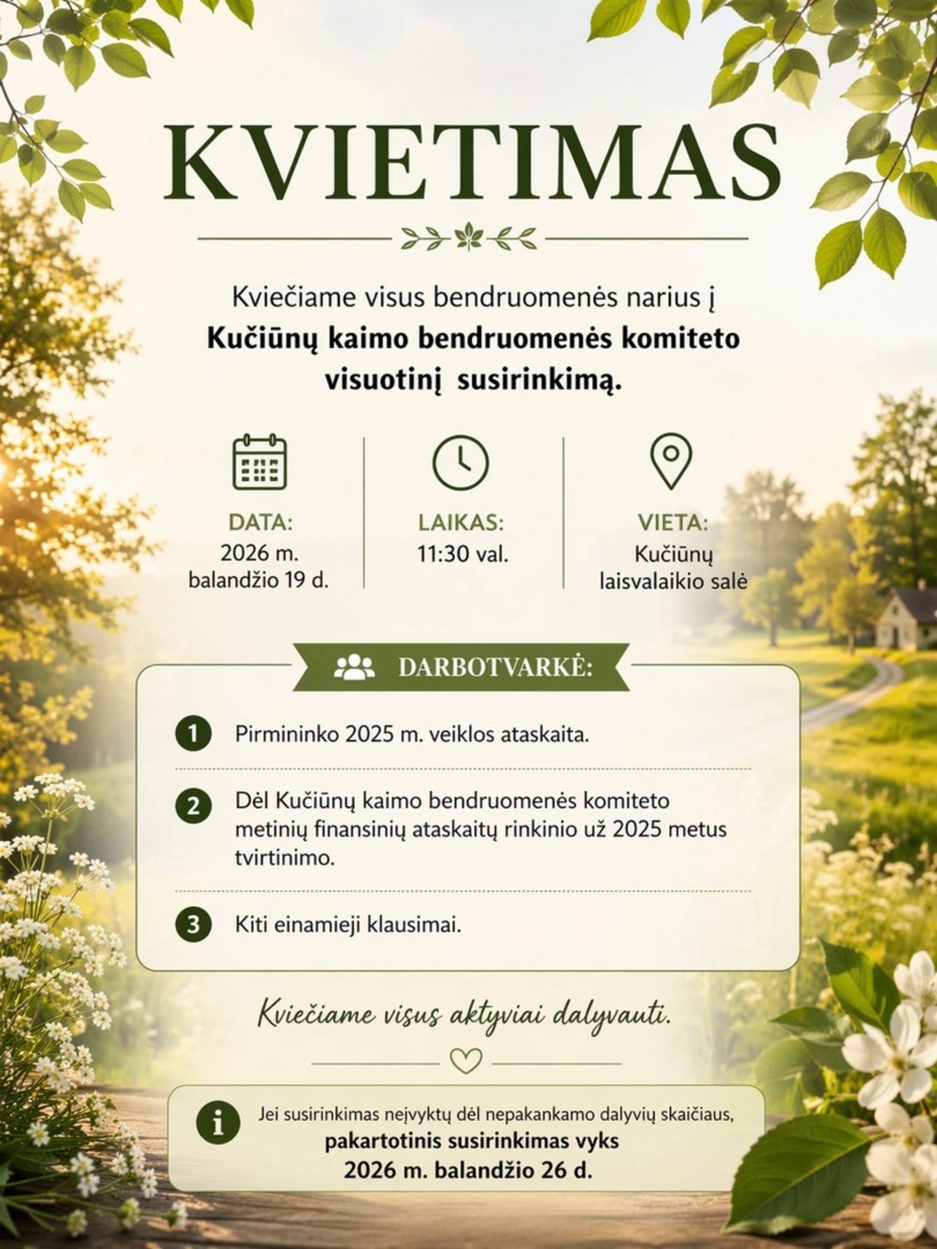 Jei susirinkimas neįvyktų dėl nepakankamo dalyvių skaičiaus, pakartotinis susirinkimas vyks 2026 m. balandžio 26 d.