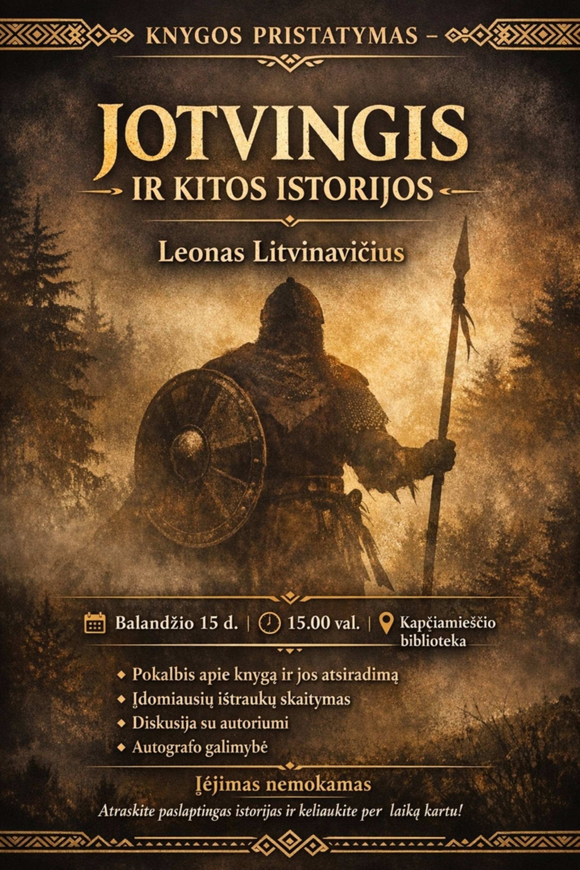 Balandžio 15 dieną 15.00 val. kviečiame į knygos JOTVINGIS IR KITOS ISTORIJOS pristatymą.
