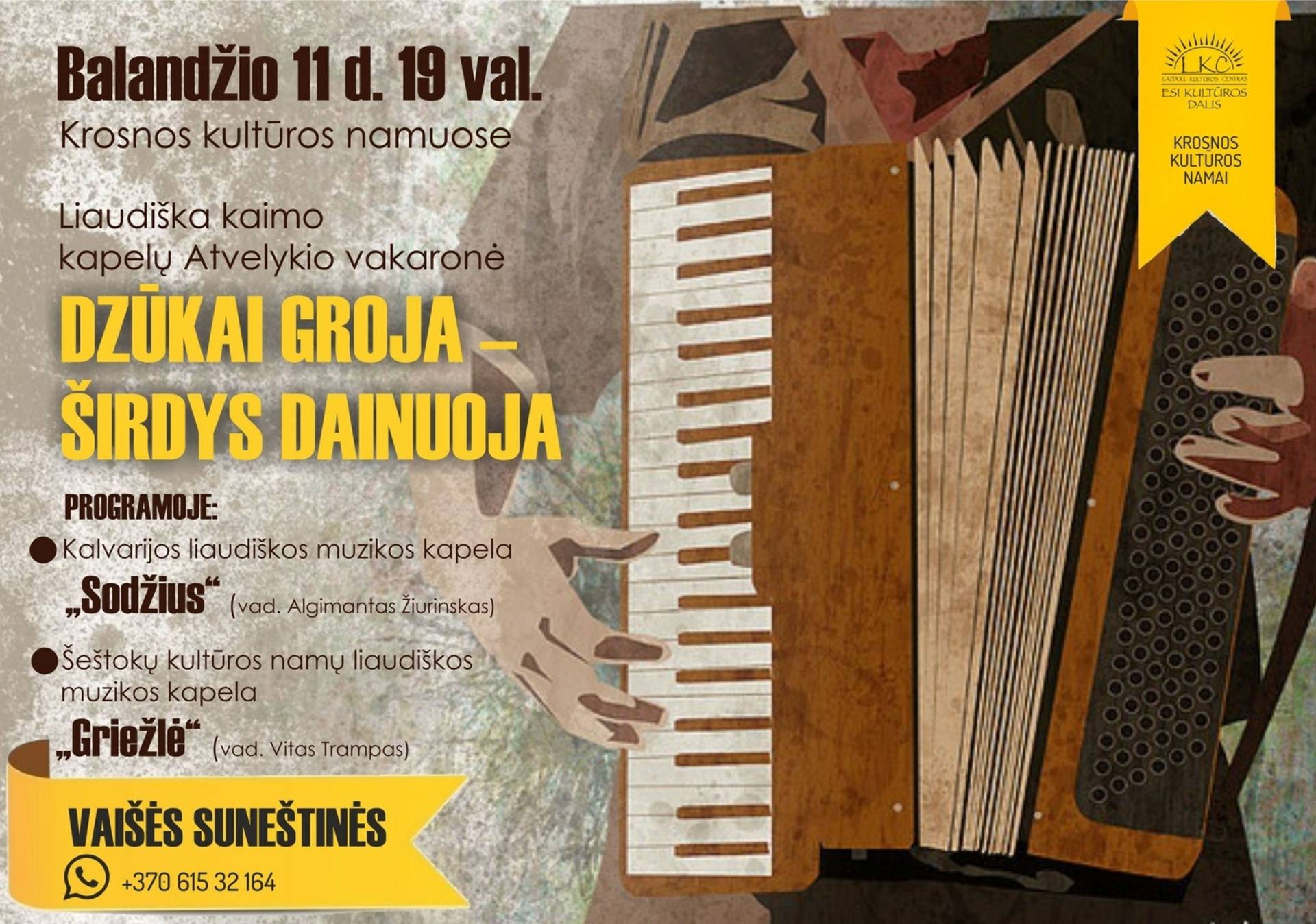 · Kalvarijos liaudiškos muzikos kapela „Sodžius“ (vad. Algimantas Žiurinskas)