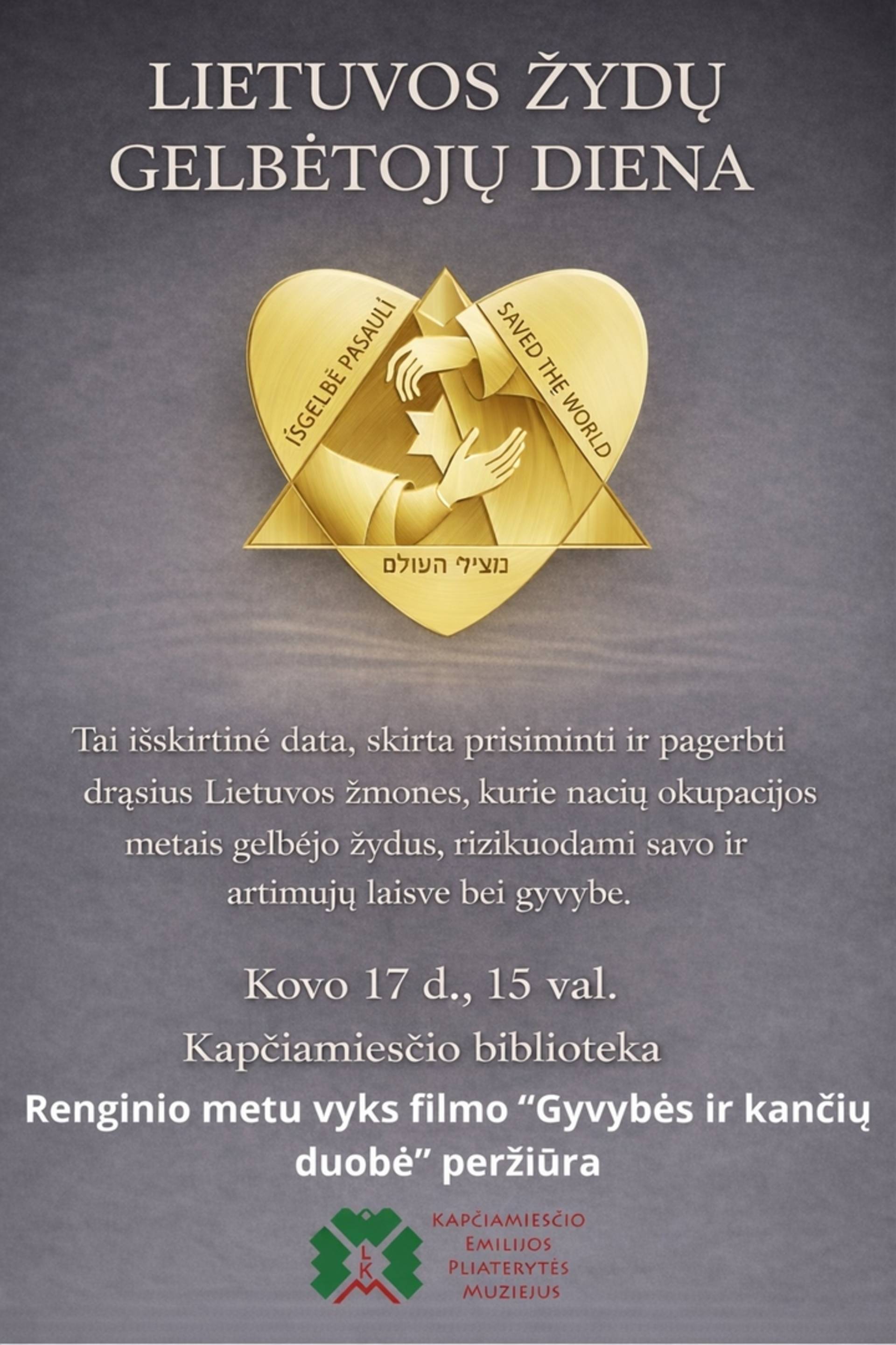 Renginio, skirto Lietuvos žydų gelbėtojų dienai paminėti metu bus rodomas dokumentinis filmas "Gyvybės ir kančių duobė". Filme pasakojama neįtikėtina Kuklianskių šeimos išsigelbėjimo istorija Antrojo pasaulinio karo metais. Filmas pagrįstas vienintelio gyvo to laikmečio liudininko – Mošės Kuklianskio – atsiminimais.
