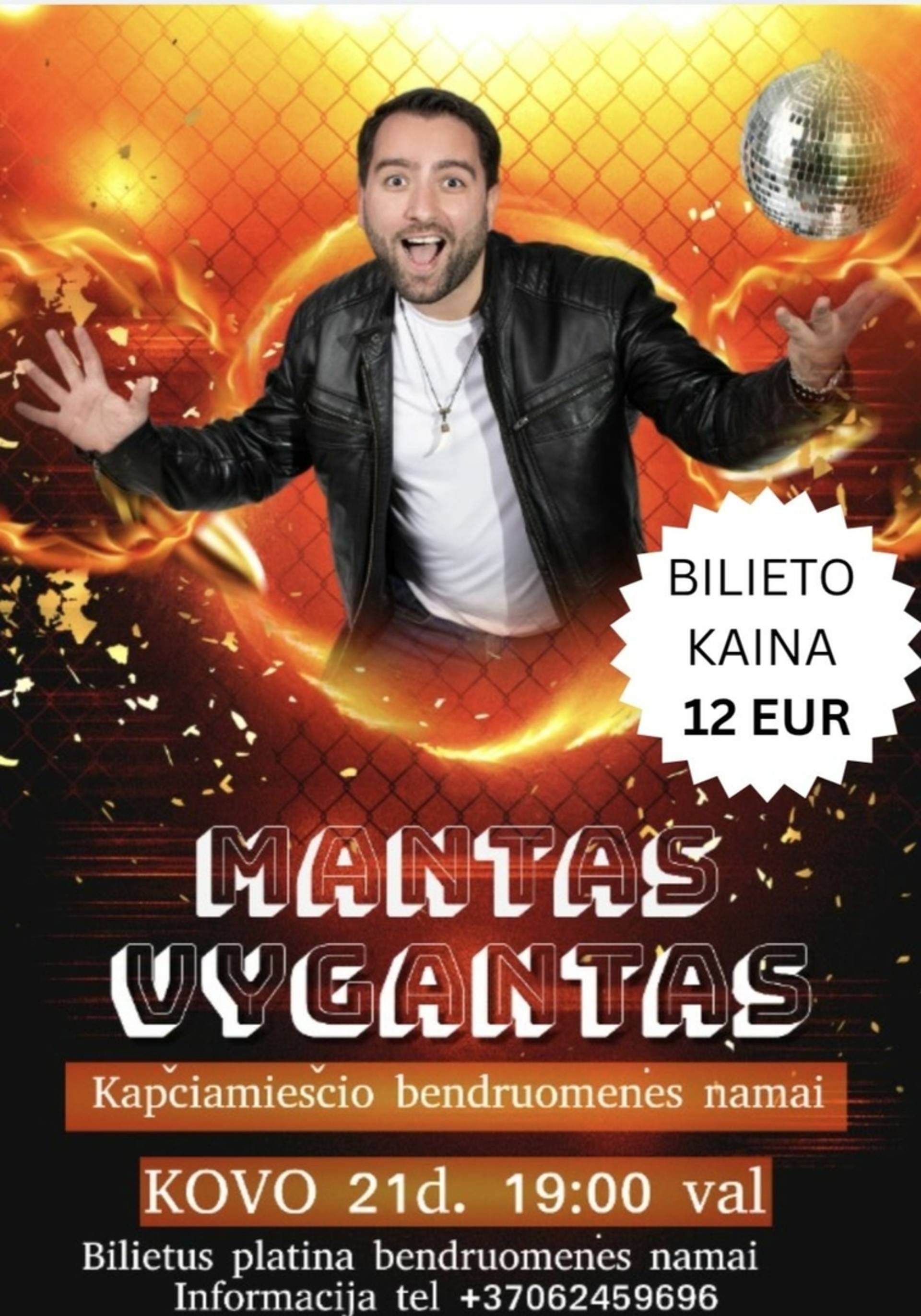 Kviečiame visus Kapčiamiesčio bei aplinkinių miestelių gyventojus dainomis praskaidrinti savo vakarą! Pasiilgusiems pop dainų, geros nuotaikos, šilto ir nuoširdaus bendravimo – Mantas Vygantas visa tai atveža tiesiai į Jūsų miestelį!