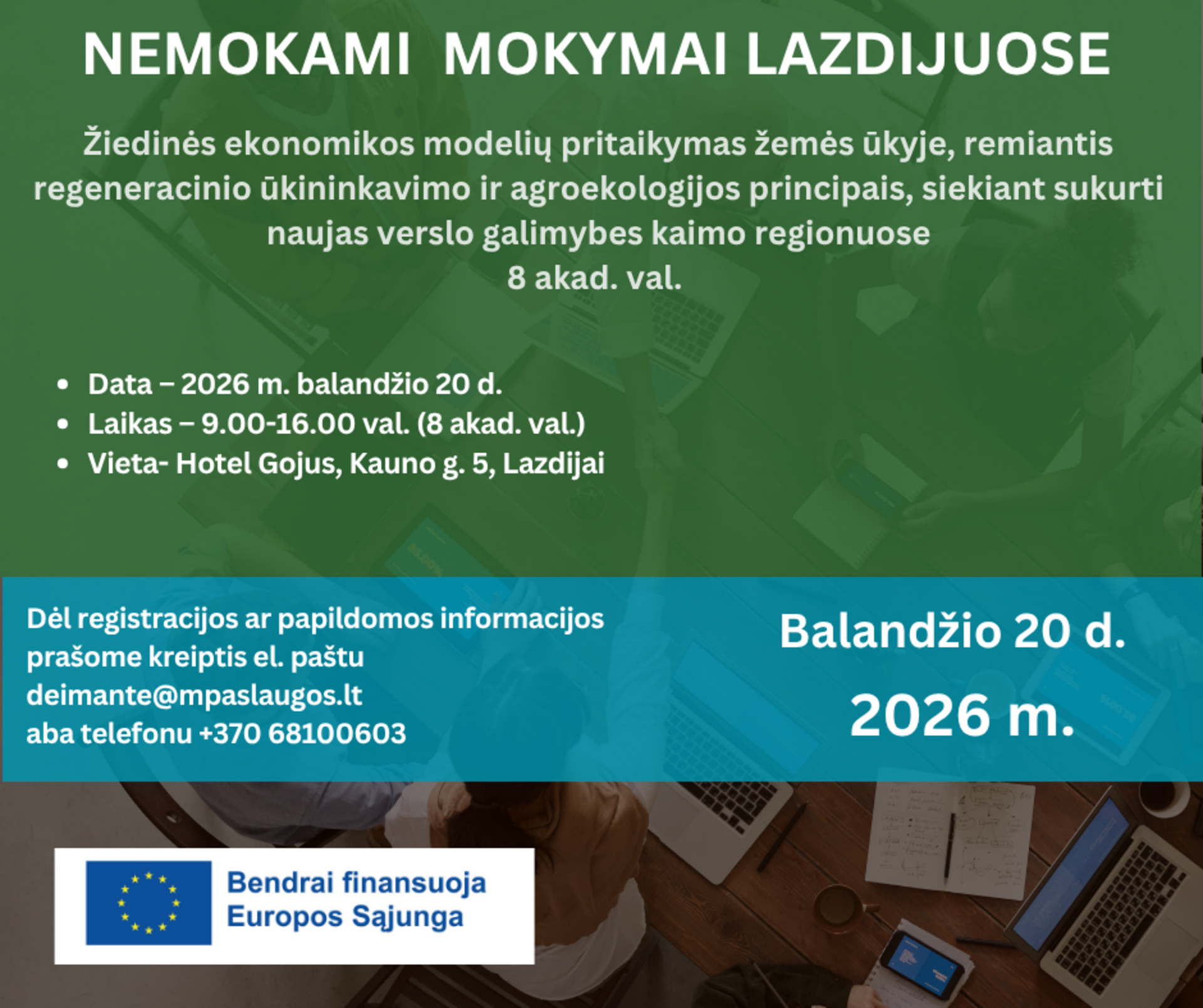 KVIEČIAME Į NEMOKAMUS MOKYMUS LAZDIJUOSE.