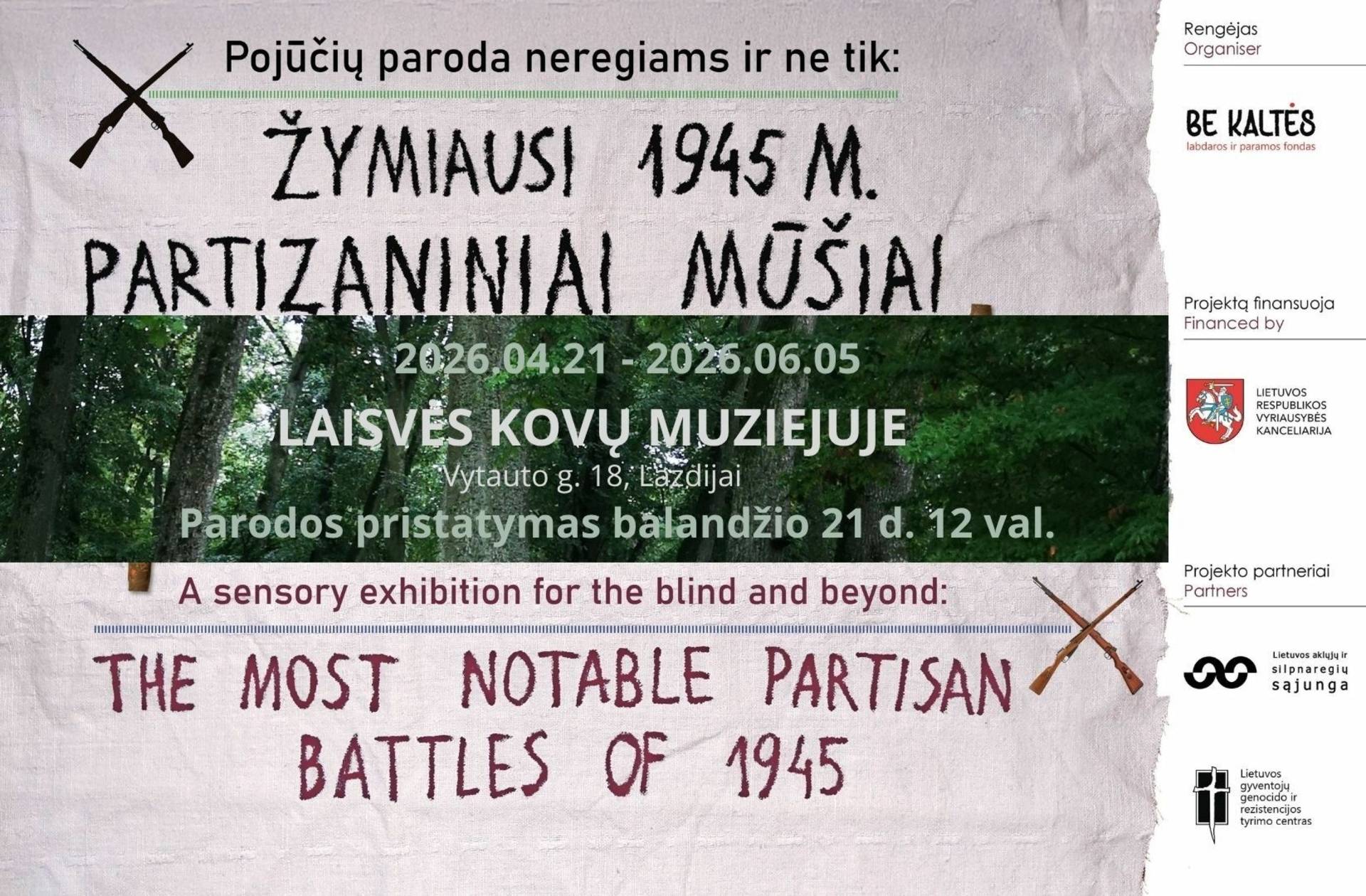 Kviečiame į parodos "Žymiausi 1945 m. Partizaniniai mūšiai" pristatymą balandžio 21 d. 12 val.