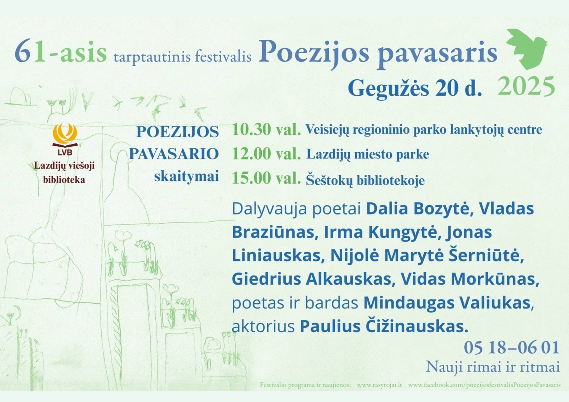 Kviečiame į tarptautinio poezijos festivalio „Poezijos pavasaris 2025“ renginius Lazdijų krašte!