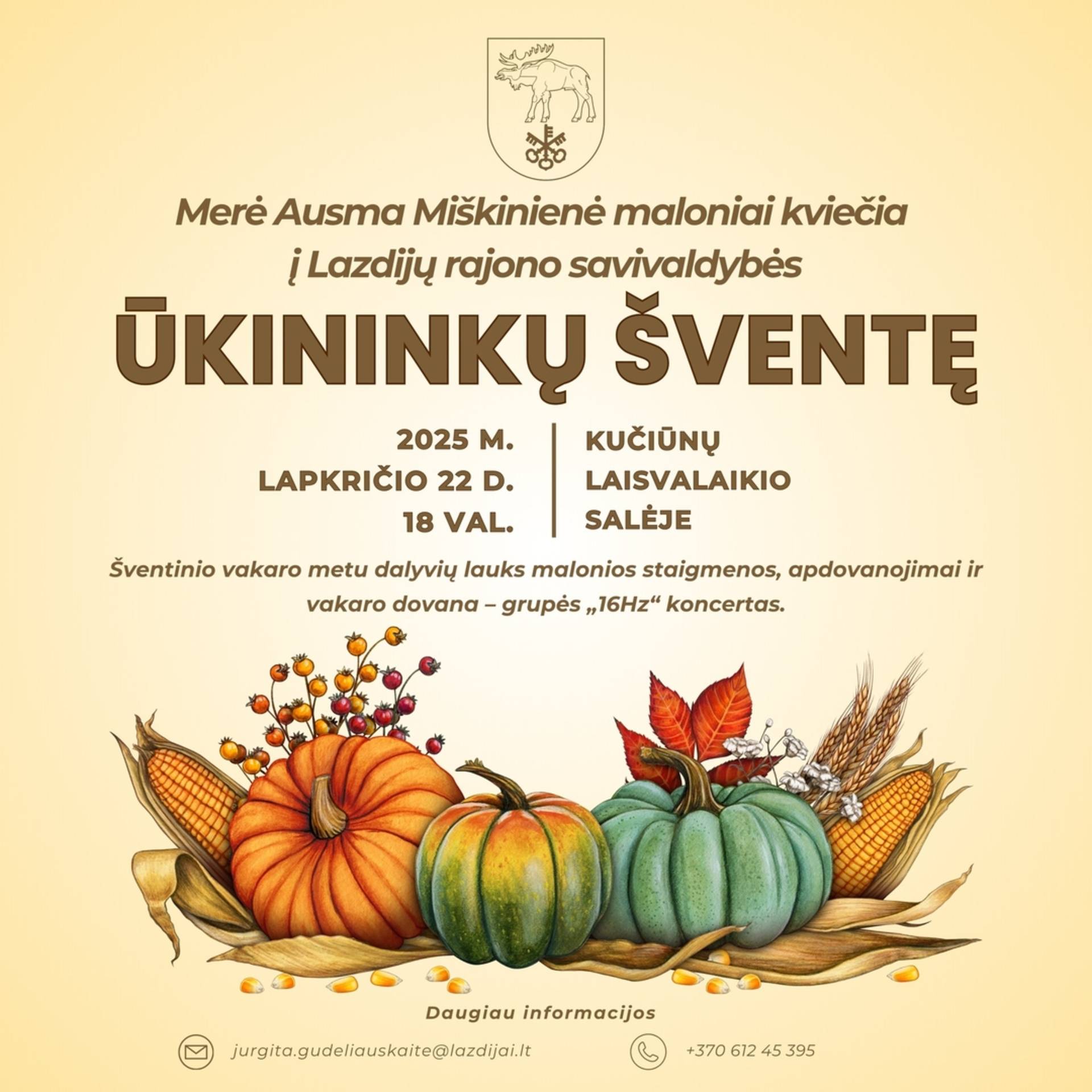 Šventinio vakaro metu dalyvių lauks malonios staigmenos, apdovanojimai ir vakaro dovana - grupės „16Hz“ koncertas.