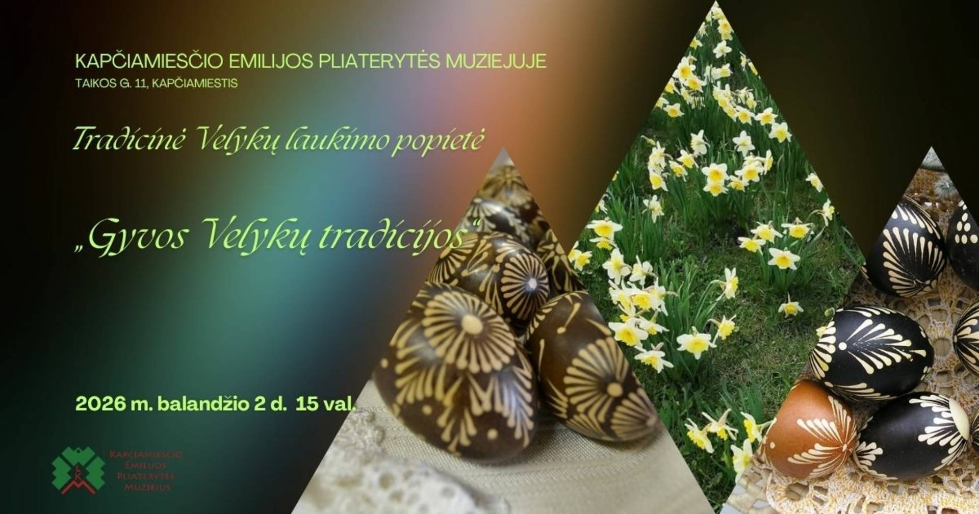 Popietėje „Gyvos Velykų tradicijos“ kviesime trumpam sustoti ir mintimis nusikelti į laikus, kai šios šventės buvo laukiamos su ypatingu susikaupimu ir nuoširdžiu džiaugsmu. Dalinsimės prisiminimais apie tai, kaip anksčiau žmonės ruošdavosi Velykoms, kokių papročių laikydavosi, kaip margindavo kiaušinius ir švęsdavo jaukiame šeimos rate.