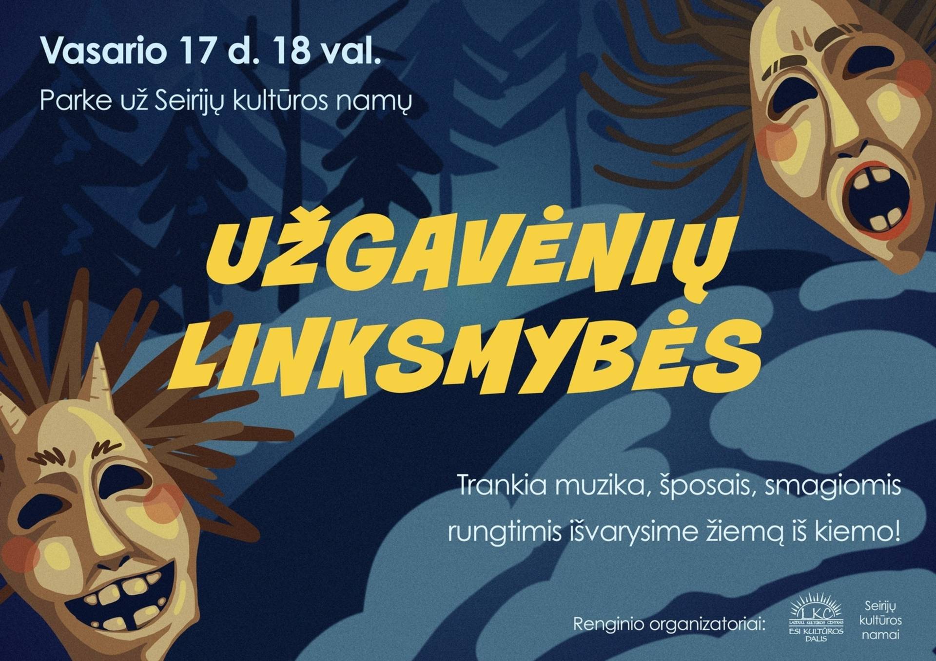 Laukiame visų - mažų ir didelių, su Užgavėnių kaukėmis , ir be jų, nusiteikusių linksmintis, varžytis ir triukšmingai žiemą iš kiemo išvaryti...