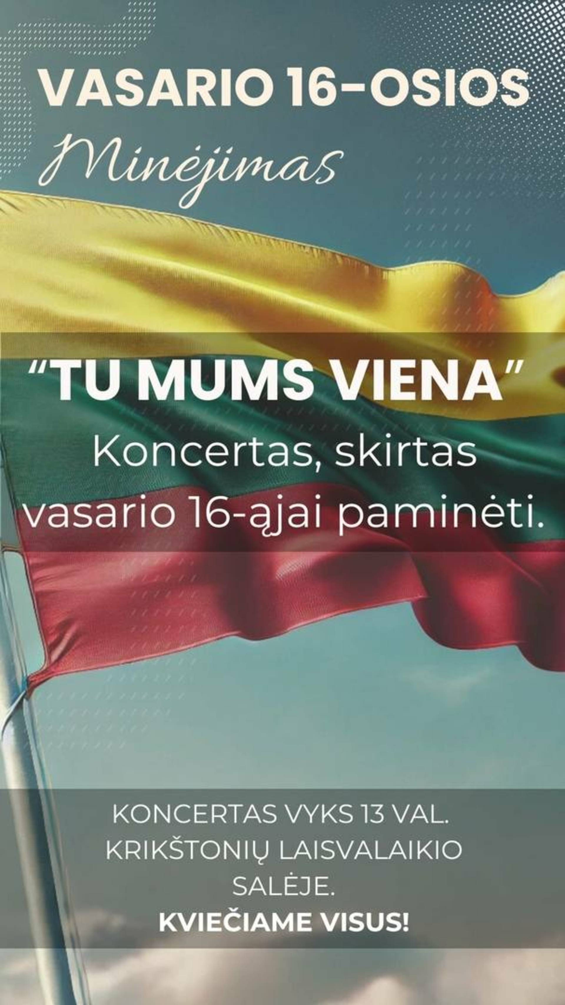 Kviečiame kartu paminėti Vasario 16-ąją. Minėjimas vyks vasario 16 d. 13 val.