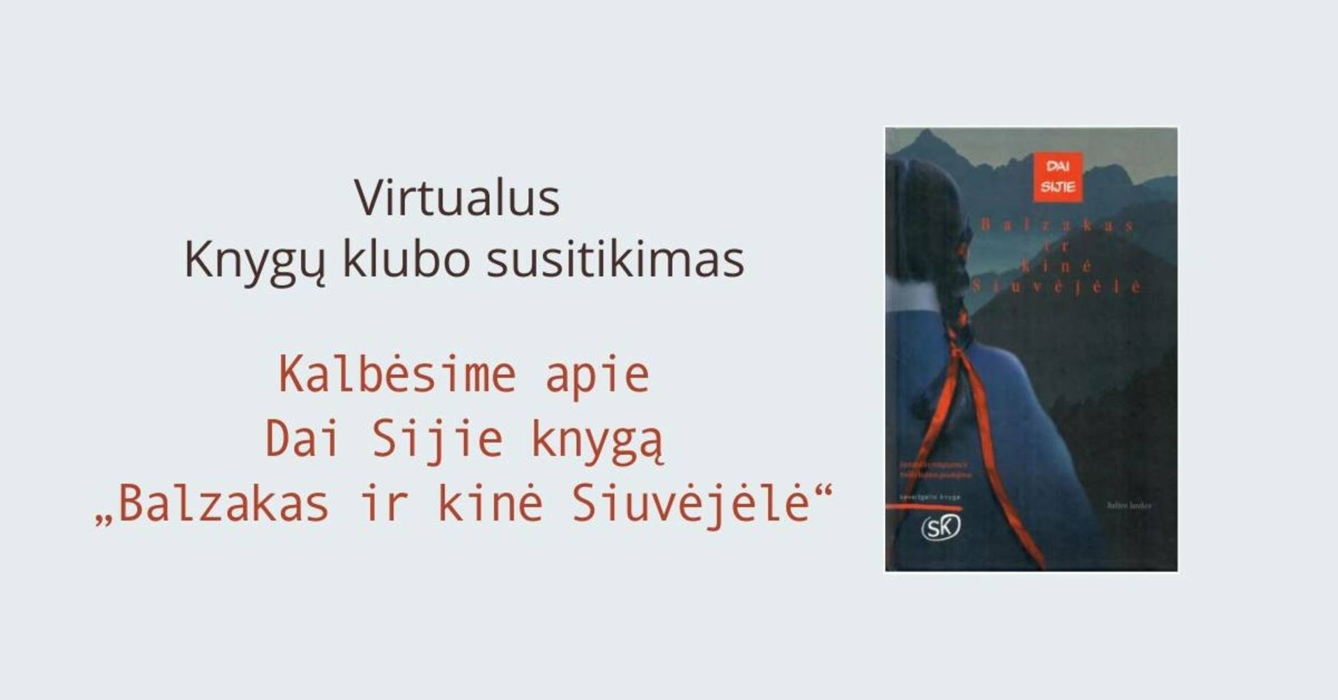 Balandžio 29 d.16 val. Kviečiame į virtualų knygų klubo susitikimą, kuriame kalbėsime apie Dai Sijie knygą „Balzakas ir kinė Siuvėjėlė“, knygos perskaityti nebūtina.