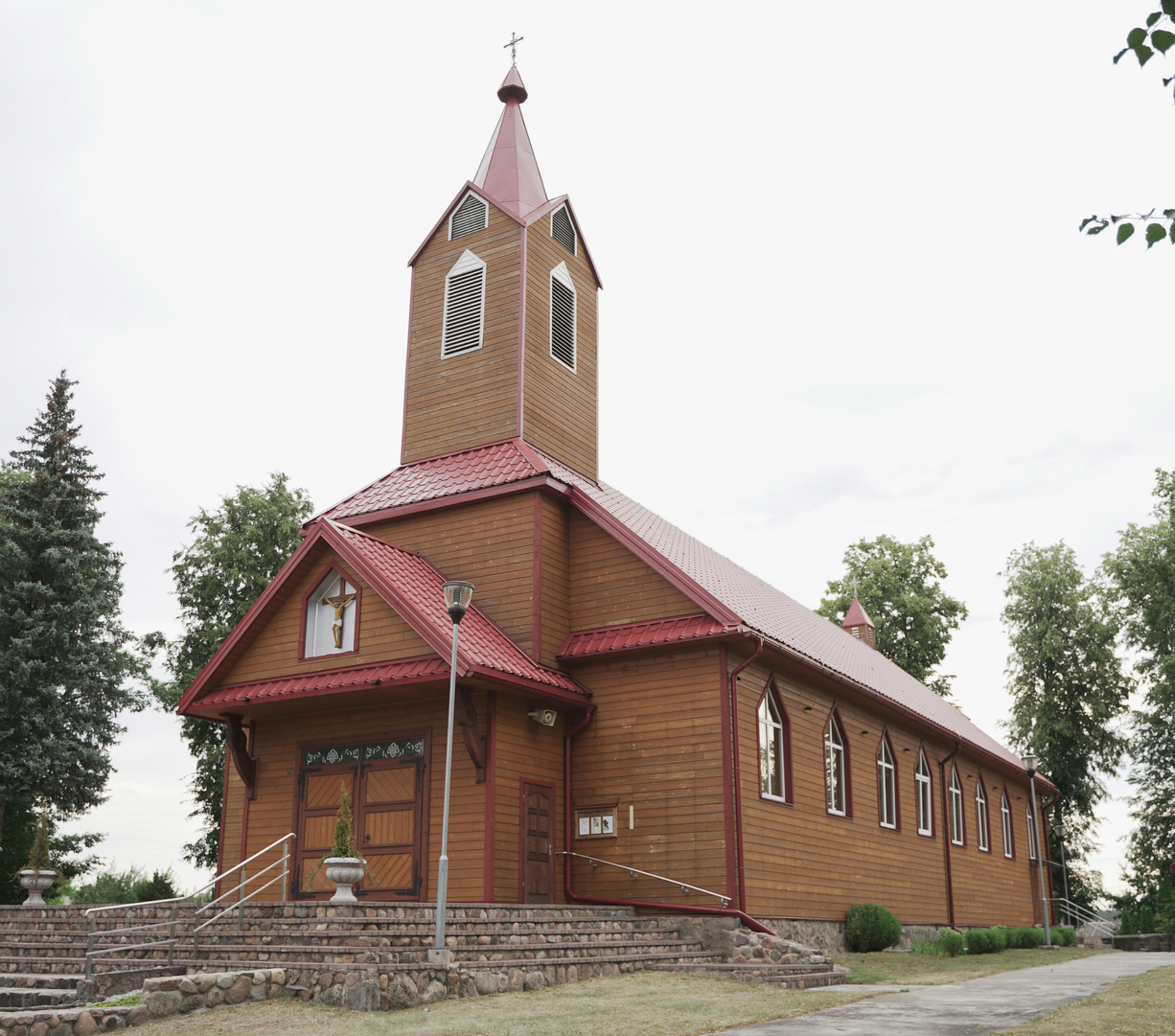 Микалоюс Огинскис в Капчяместисе в 1724 году. построил общественную часовню. в 1744 году это называется ветвью. 18-ый век во второй половине был основан приход. С 1777 г. существовала церковно-приходская школа. В Капчяместис в 1900 году. назначенный священник М. Гуога начал использовать во время богослужений литовский язык. в 1907 году Филиал общества «Жибурис» (председатель преподобный Юозас Бриджюс) основал библиотеку – читальный зал. в 1941 году 22 июня церковь сгорела. Установлено временно. В 1956 году под опекой пастора Александра Лабанаускаса и при помощи верующих. была построена новая нынешняя церковь. Длина церкви 31 м (притвор 2 м, центр 22 м, пресвитерий 7 м), ширина 11,6 м, высота по бокам 4,8 м, в среднем нефе 8,75 м, высота с башней 19 м. Поначалу церковь выглядела простой, но постепенно, с некоторыми ремонтами и улучшениями, она оказалась очень красивой, хотя и скромной церковью. Украшенная и украшенная церковь приобрела черты и оттенки народного творчества и стала цениться как интересное произведение народных мастеров.