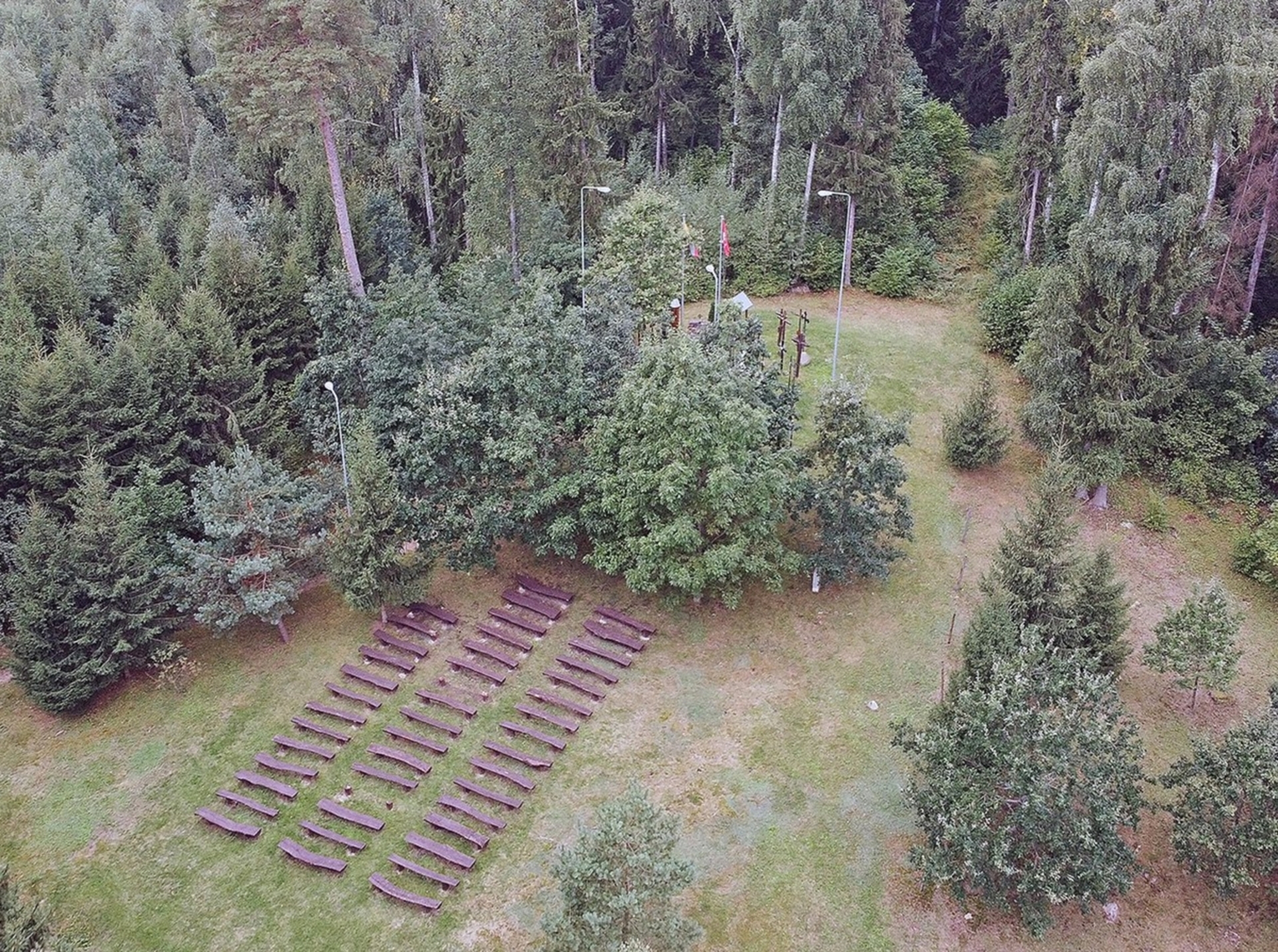 В Калнишкесском лесу, именно в этом месте, 16 мая 1945 года произошел один из крупнейших боев литовских партизан с советскими оккупантами. Около 100-120 партизан во главе с Йонасом Нейфальтасом-Лакунасом пробились в окружение значительно превосходящих сил 220-го погранполка армии НКВД и вырвались из окружения. Несколько сотен врагов были убиты, многие из них были ранены. Убито более 40 партизан Дайнавского района (62 по оперативным документам). Из них известны: Адомас Алезий, р. 1922, ум. село Кросненай, офис Лаздийский район, Пятрас Аустревичюс-Куртас, ул. 1921, ум. Деревня Скитуриу, даб. Алитусский район, Йонас Ажукас, г. 1927, ум. Шаркишкю к., даб. Алитусский район, Юргис Бальчюнас-Угнис, г. 1918, ум. В шестом классе, даб. Лаздийский район, Йонас Ботирюс-Басанавичюс, ул. 1916, ум. с.Тракишкю, офис Мариямпольский район, Леонардас (Леонас) Ботириус-Тарзанас, г. 1922, ум. с.Тракишкю, офис Мариямпольский район, Вацловас Бразайтис-Стирна, г. в 1917 году Дзуки к., даб. Лаздийский район, Антанас Бубнис, д. Деревня Атеснинкай, даб. Алитусский район, Бужулис, Альфонсас Чижикас-Дуолас, г. 1925, ум. село Рандишкес, офис Лаздийский район, Пятрас Чижикас-Дуолас, г. 1925, ум. село Марьинка, офис Алитусский район, Иеронимас Дамбаускас-Юолинис, г. 1920, ум. Деревня Пагранди, даб. Мариямпольский район, Клеменсас Дамбаускас-Таурас, г. 1926, ум. село Пагранду, Мариямпольский район, Виталиюс Грузинскас-Бержас, г. 1912, ум. село Витаутишкес, офис Лаздийский район, Антанас Гурявичюс-Сакалас, г. 1923, ум. Пошняс, даб. Лаздийский район, Вацловас Кадушкявичюс-Жалтыс, d. Пол печи, помещение Лаздийский район, Йонас Какнявичюс-Лапас, ул. 1918, ум. Деревня Астриасой Кирсна, маз. Лаздийский район, Антанас Караускас, г. 1927, ум. село Сейменишкю, офис Алитусский район, Казакявичюс, проживает, село Атриосиос Кирсна, д.б. Лаздийский район, Юлиус Климавичюс-Кранклис, г. 1918, ум. село Бирщю, офис Лаздийский район, Йонас Кубилюс-Бержелис, ул. 1920 год село Марьинка, офис Алитусский район, Пиюс Кунигонис-Бержелис, г. 1924, ум. село Падусио, Лаздийский район, Пятрас Кведаравичюс-Кишкис, г. 1924, ум. деревня Атеснинкай, Винцас Лескявичюс-Байорас, г. в 1913 году село Лопишкиу, офис Лаздийский район, Антанас Левицкас, г. 1920 г., село Тракишкиу, маз. Мариямпольский район, Албинас Маскелис, г. 1918 г., село Шаркишкю, обр. Алитусский район, Юргис Маскелис-Эуолас, г. 1900 (1895?), год, ум. село Шаркишкю, Альбина Нейфальтене-Пушеле, г. 1921, ум. Деревня Стебулю, даб. Лаздийский район, Бронюс Онушкевичюс, ул. село Атеснинкай, командир партизанского отряда Александрас Падиманскас-Шарунас, г. 1917 г., д. Смальничяс, маз. Лаздийский район, Юозас Паяуис-Сиеетинас, г. 1918 (1915?) деревня Смальничяс, Витаутас Павилонис-Васарис, г. 1920, ум. село Витаутишкес, Антанас Печкис, г. 1926, ум. деревня Атеснинкай, Йонас Поцкявичюс-Эуолас, Бронюс Равайтис, г. 1927, Пранас Рекштис (Рекштис?), р. 1926, ум. село Марьинка, Константинас Шолгаускас (Шулгаускас?)-Свогунас, г. 1922 г., село Моцкава, маз. Мариямпольский район, Юозас Вайшнис-Самсонас, Карос, г. 1919 (1924?), ум. село Смалининкай, офис Лаздийский район, Витаутас Вайшнис-Романас, г. 1916, ум. д. Смалининкай, Юозас Валка-Груодис, ул. 1922, ум. деревня Витаутишкес, Юозас Венцлаускас (Венслаускас?)-Алкснис, ул. 1922 (1919), ум. село Жагаришкес, офис Мариямпольский район, Витаутас Вильчинскас-Жайбас, г. 1919, ум. Атесникилю к., даб. Алитусский район, Она Вильчинскене Бубните-Дребуле, г. 1921 (1916) село Атеснинк