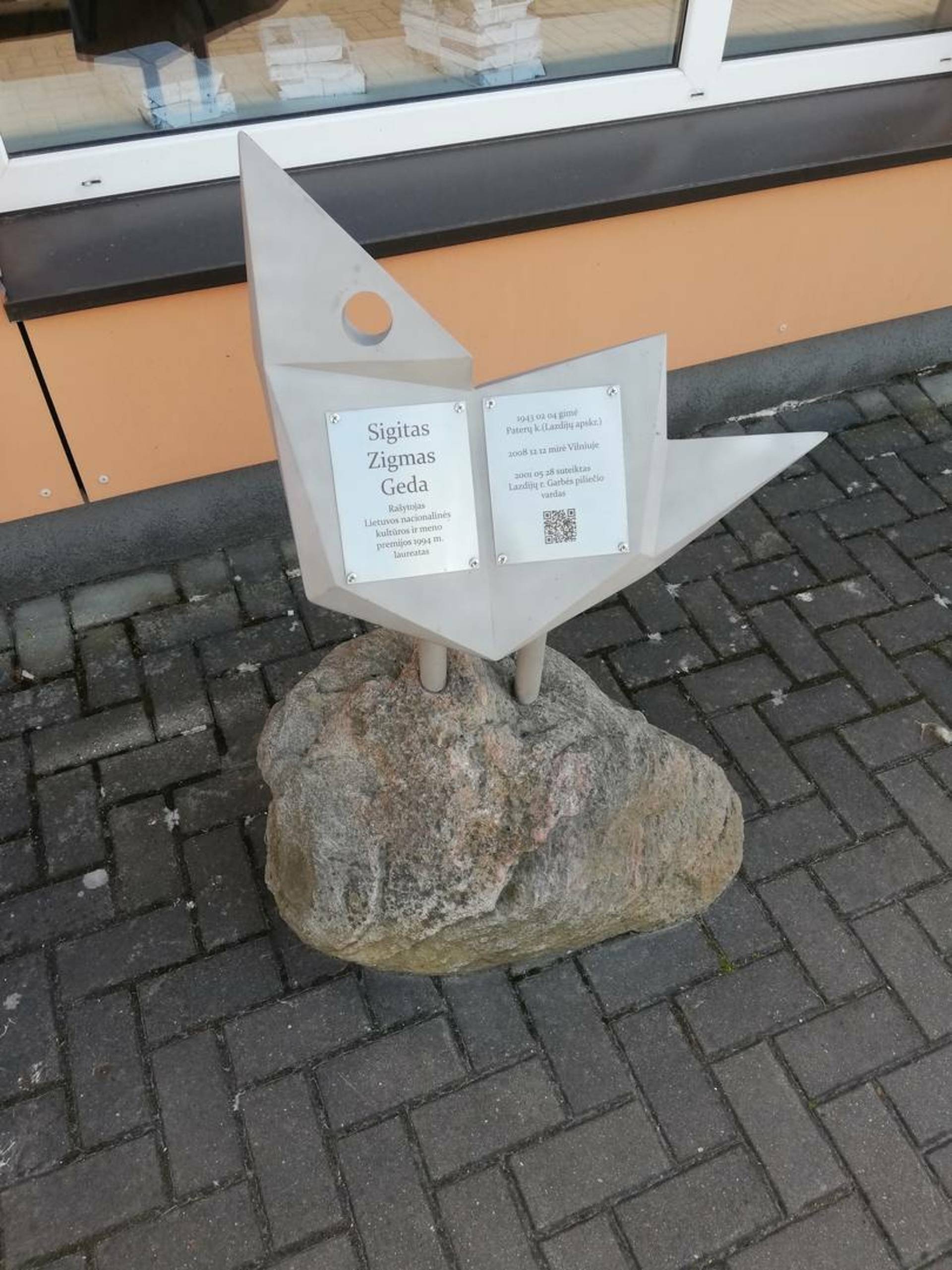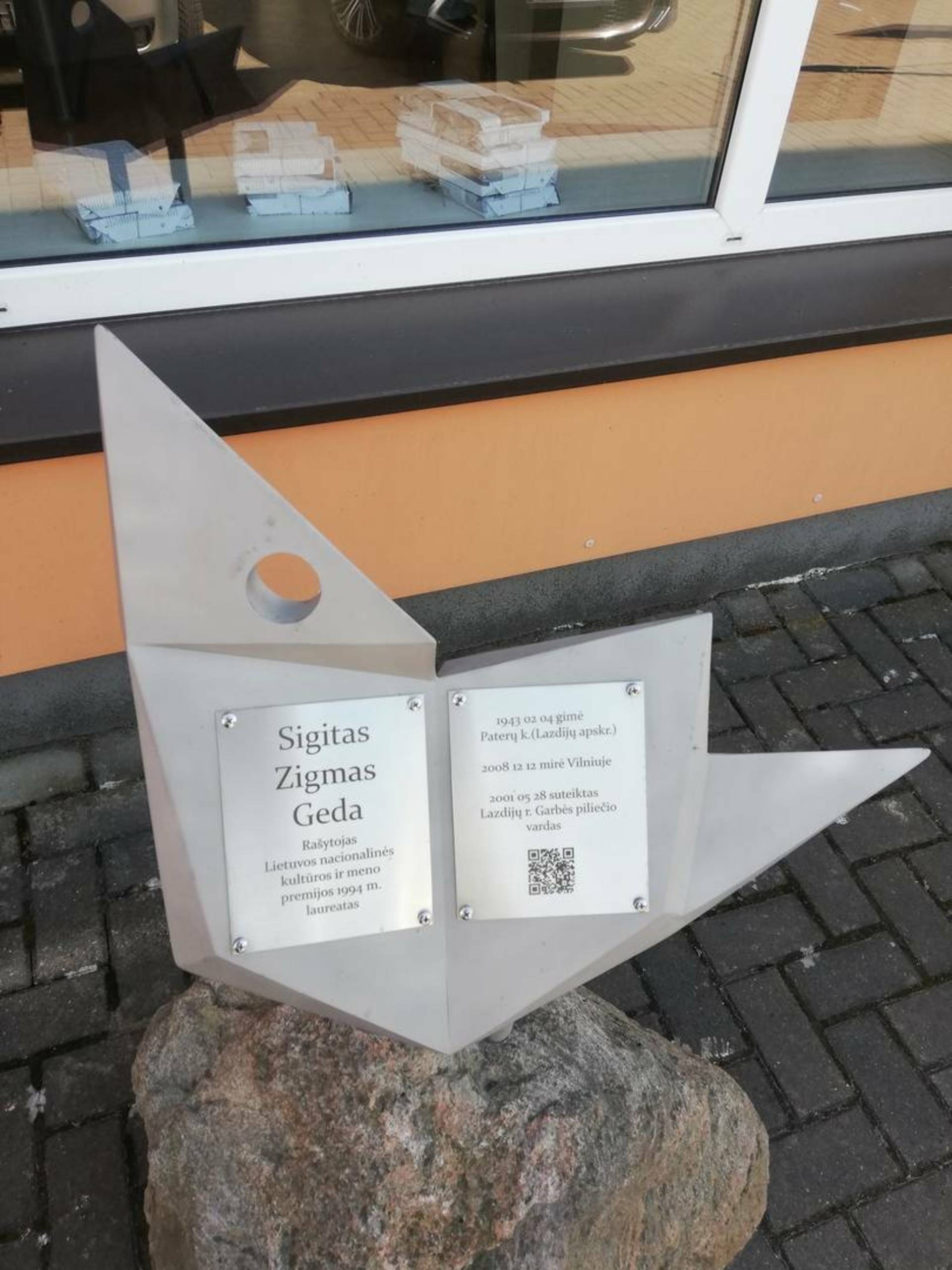 в 2022 году Результатом проекта «Литературная тропа региона Лаздия», осуществленного публичной библиотекой самоуправления Лаздийского района, стало создание памятной доски писателю С. Геде (автор – скульптор Альгис Каспаравичюс из Лаздии).