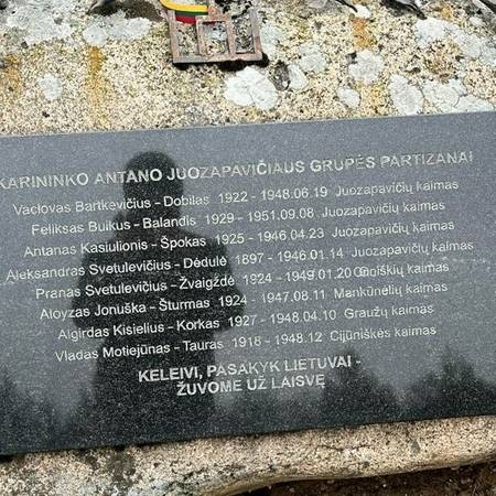 Здесь похоронены партизаны отряда офицера Антанаса Юозапавичюса.