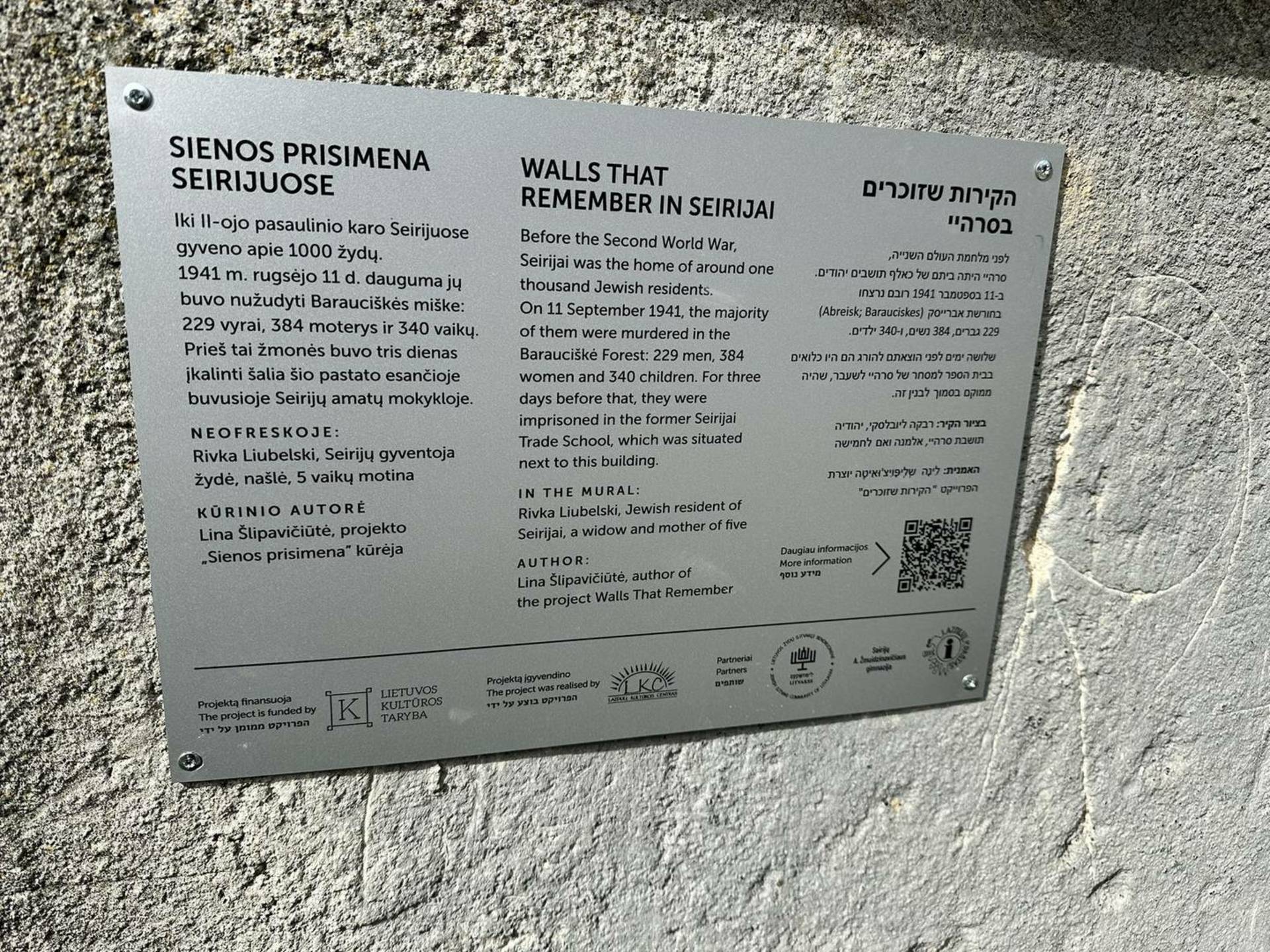 Рядом с работой можно найти таблицу со всей информацией, а QR-код ведет на созданную для нее страницу: https://www.lazdijukulturoscentras.lt/informacija/sienos-prisimena-seirijuose/?fbclid=IwAR3XkI5gaRdB-IjISmHhZVTenLq28ooC5guG37i -x-4vCbVaKt8cKeq5XIs