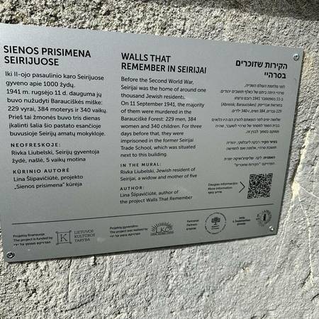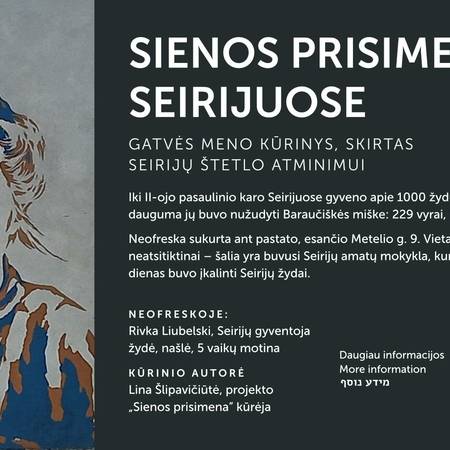 Проект уличного искусства Лины Шлипавичюте «Sienos prisimena», продолжающийся с 2019 года, возвращает на улицы память о евреях литовских городов. Неофрески созданы на основе подлинных фотографий и украшают стены Вильнюса, Меркино, Салантай, Утяны, Швекшны, Молетай. С 2023 года летом к ним присоединился Сейрияс. Неофреска создана на здании, расположенном на ул. Метелио. 9, стены. Место выбрано не случайно – рядом стоит бывшая ремесленная школа Сейриджуи, где в 1941 г. В сентябре евреи Сейридже были заключены в тюрьму на несколько дней перед расстрелом.