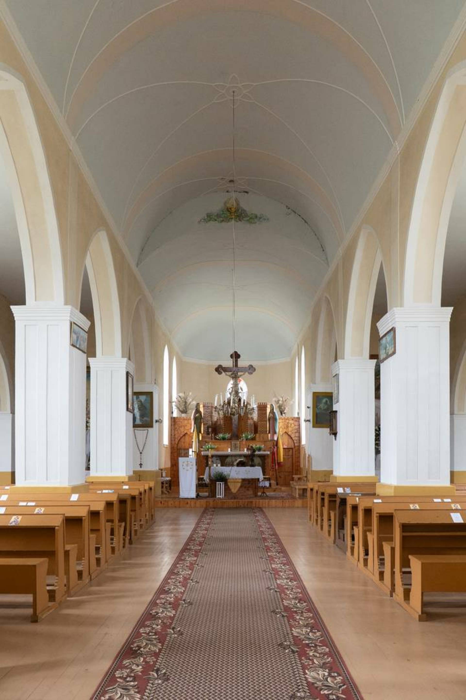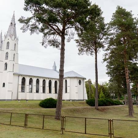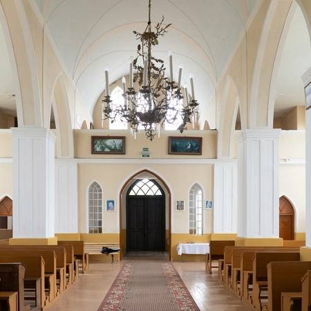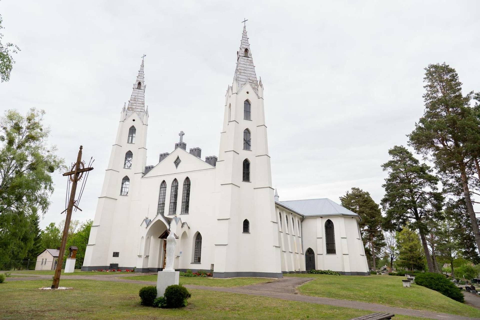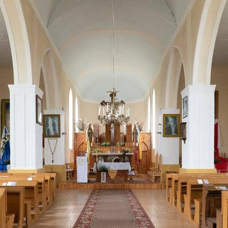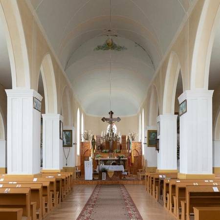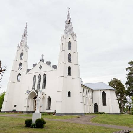 Пастор, известный историк и этнограф Йонас Рейтелайтис (1884–1966) разработал проект церкви в 1926 году и руководил ее строительством. Он единственный известный священник, который спроектировал и руководил строительством церкви в Литве в межвоенный период. Для утверждения проект должен был быть подписан сертифицированным архитектором. Витаутас Жемкальнис согласился помочь с его подписью. Возможно, он внес некоторые коррективы в проект. Церковь представляет собой сакральное сооружение нестандартной архитектуры с уникальным планом, необычными пропорциями фасада и элементами неоготики. Неповторимая пластика здания создана за счет сочетания народных и профессиональных архитектурных тенденций. Автор оригинально интерпретировал неоготические формы и использовал популярные в тот период элементы народного стиля. Внутри церковь скромная, с простым грандиозным алтарем. Церковь большая и очень уютная. Похоже, он выходит из-под земли с двумя большими башнями на фронтоне и небольшой башенкой сзади, напротив ризницы. На одной из больших башен есть колокольня. Колокол весом 153 фунта купил деревенская молодежь. Й. Рейтелайтис похоронен на погосте Крикштонской церкви.