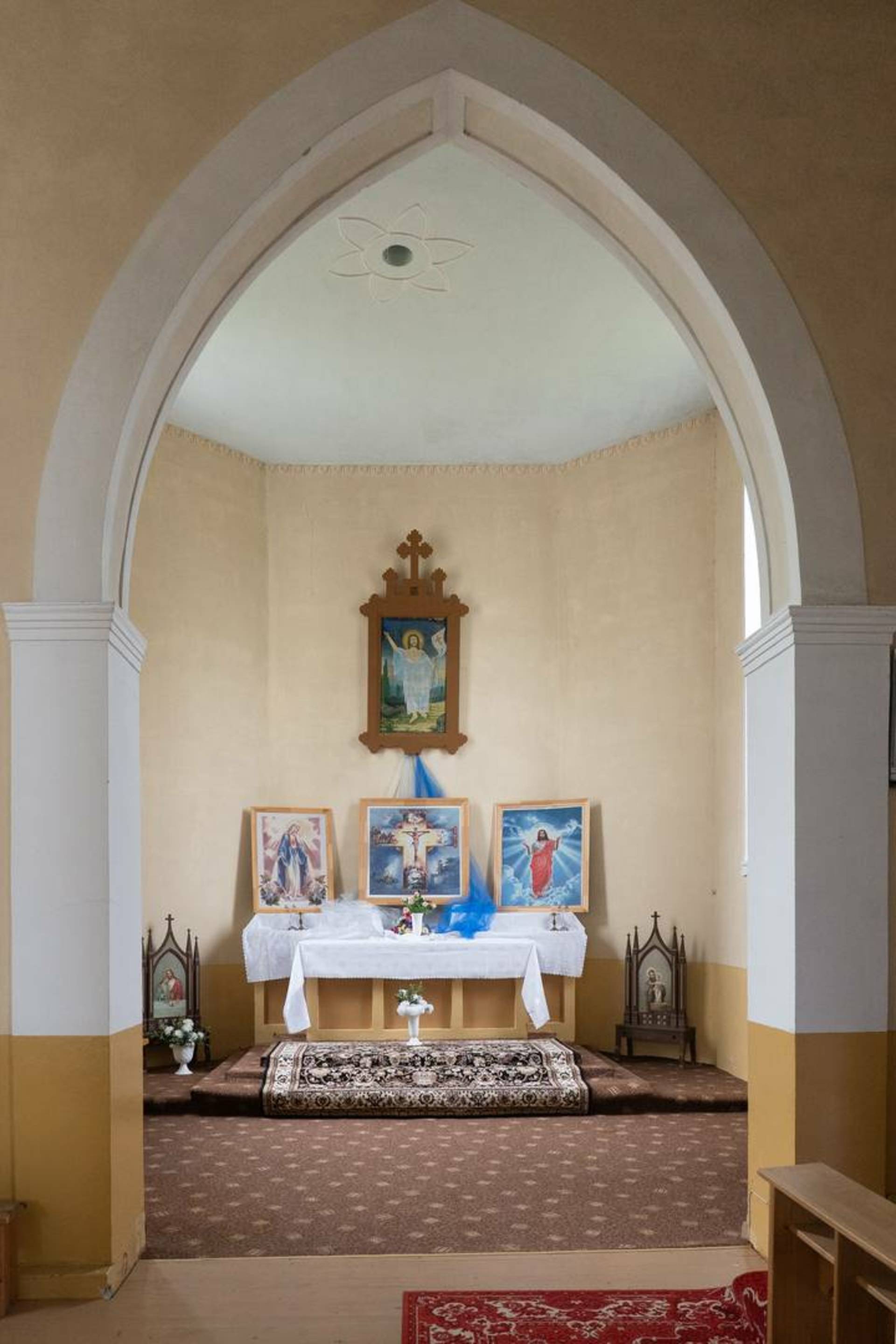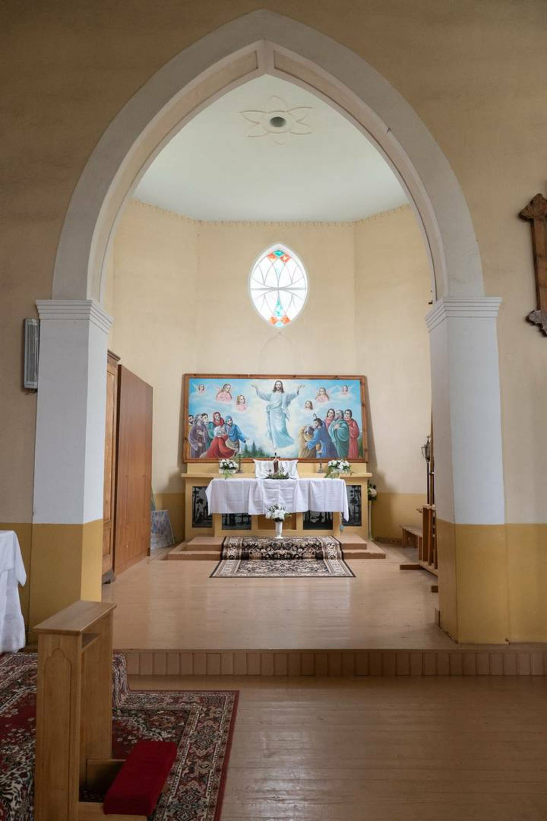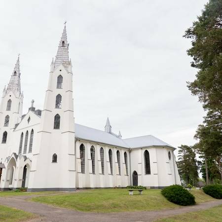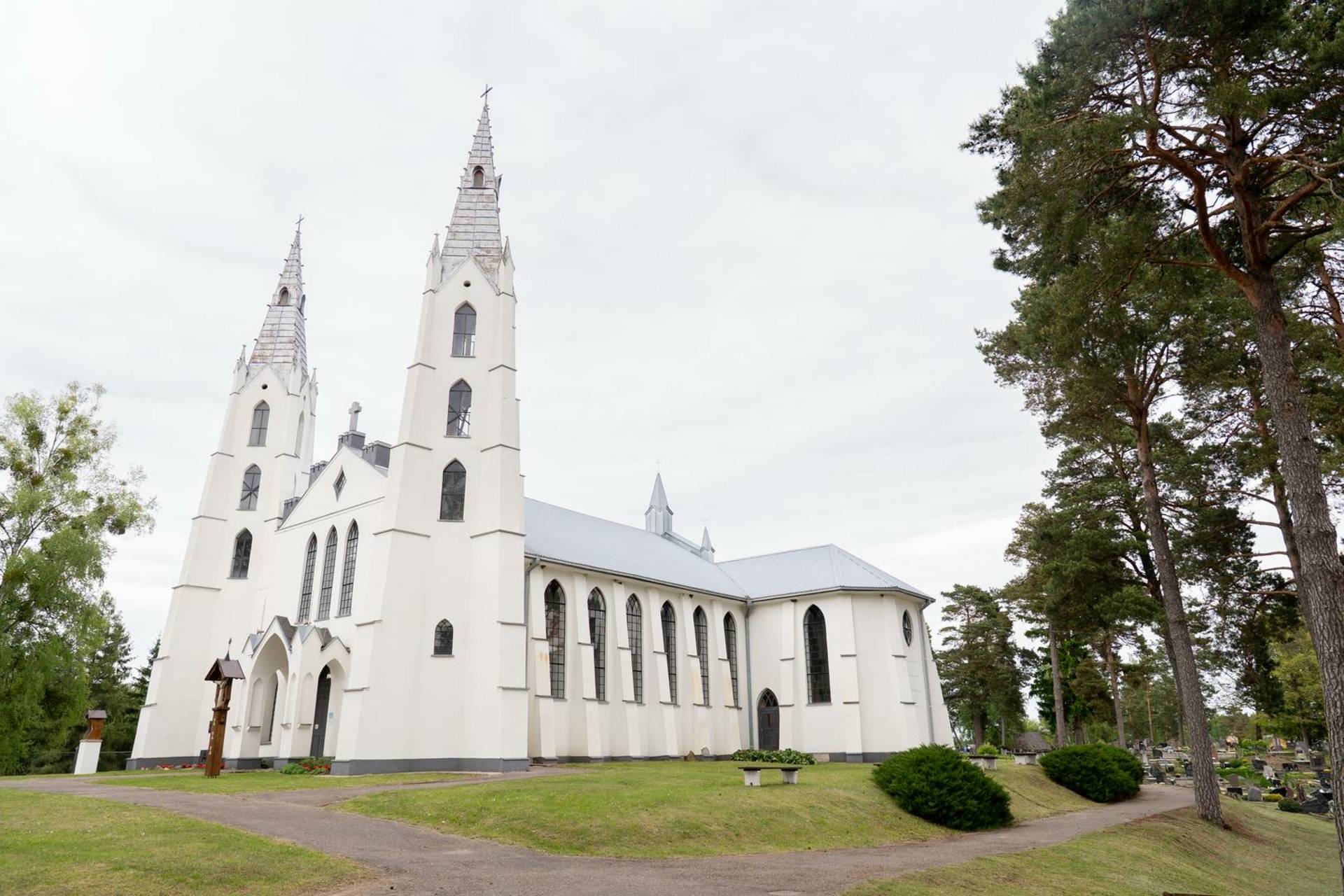 Пастор, известный историк и этнограф Йонас Рейтелайтис (1884–1966) разработал проект церкви в 1926 году и руководил ее строительством. Он единственный известный священник, который спроектировал и руководил строительством церкви в Литве в межвоенный период. Для утверждения проект должен был быть подписан сертифицированным архитектором. Витаутас Жемкальнис согласился помочь с его подписью. Возможно, он внес некоторые коррективы в проект. Церковь представляет собой сакральное сооружение нестандартной архитектуры с уникальным планом, необычными пропорциями фасада и элементами неоготики. Неповторимая пластика здания создана за счет сочетания народных и профессиональных архитектурных тенденций. Автор оригинально интерпретировал неоготические формы и использовал популярные в тот период элементы народного стиля. Внутри церковь скромная, с простым грандиозным алтарем. Церковь большая и очень уютная. Похоже, он выходит из-под земли с двумя большими башнями на фронтоне и небольшой башенкой сзади, напротив ризницы. На одной из больших башен есть колокольня. Колокол весом 153 фунта купил деревенская молодежь. Й. Рейтелайтис похоронен на погосте Крикштонской церкви.