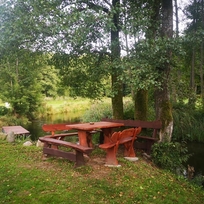 В городе Капчяместис, на излучине впечатляющей красоты реки Белая Анчия, на 1 гектаре земли предлагается место для отдыха или место для небольших семейных торжеств. Вся территория усадьбы окружена 500-метровой излучиной реки Белая Анчия, в 2017 году на территории был вырыт пруд с чистой водой площадью 8 акров, построена баня. Уникальная природа Дзукии и большая долина - Долина счастья - позволят вам приятно провести время, близлежащие леса пригласят вас за грибами, течение реки - попробовать свои силы в каякинге. 15 мест для семейных торжеств. Размещение - 10 человек. На кухне есть холодильник, газовая плита, горячая вода, основная посуда и посуда. Есть душ и туалет, барбекю, мангал, дрова, волейбол, баскетбол, бадминтон, качели, шезлонги, гамаки, батут, детская песочница, камины. Мосты построены через реку и пруд. 8-ми местная сауна и другие развлечения. В этом районе достаточно места для палаток или кемпинга. Каноэ по выбранному маршруту.