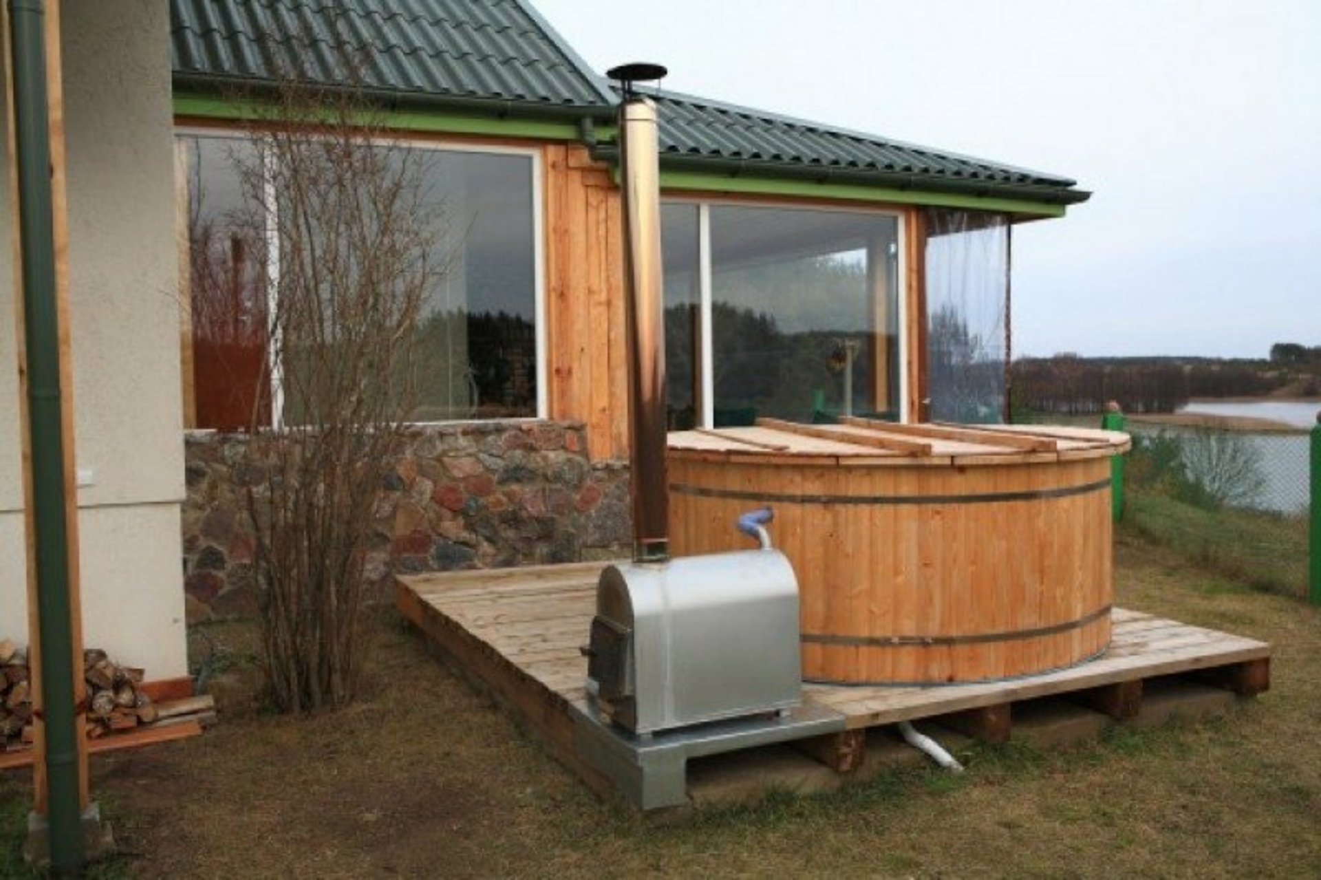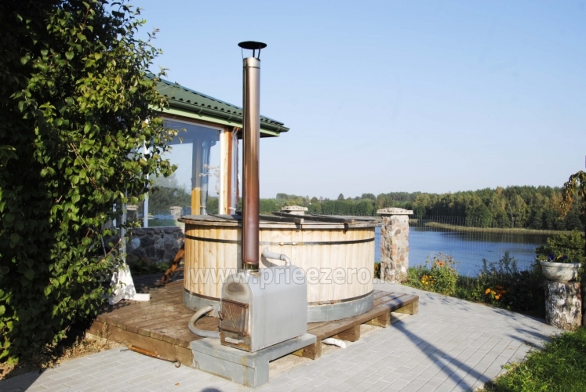 Возле обоих домов есть две большие террасы с видом на озеро. Также имеется гидромассажная ванна, в которой одновременно могут разместиться до 10 человек. Усадьба также подходит для детей: огороженная территория, небольшой открытый бассейн, качели и другие развлечения. Взрослые могут с удобством ловить рыбу с моста, а желающие могут покататься на лодке или водном велосипеде. Поздний выезд возможен по предварительной договоренности с хозяевами.