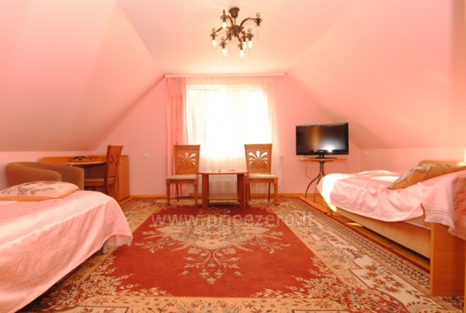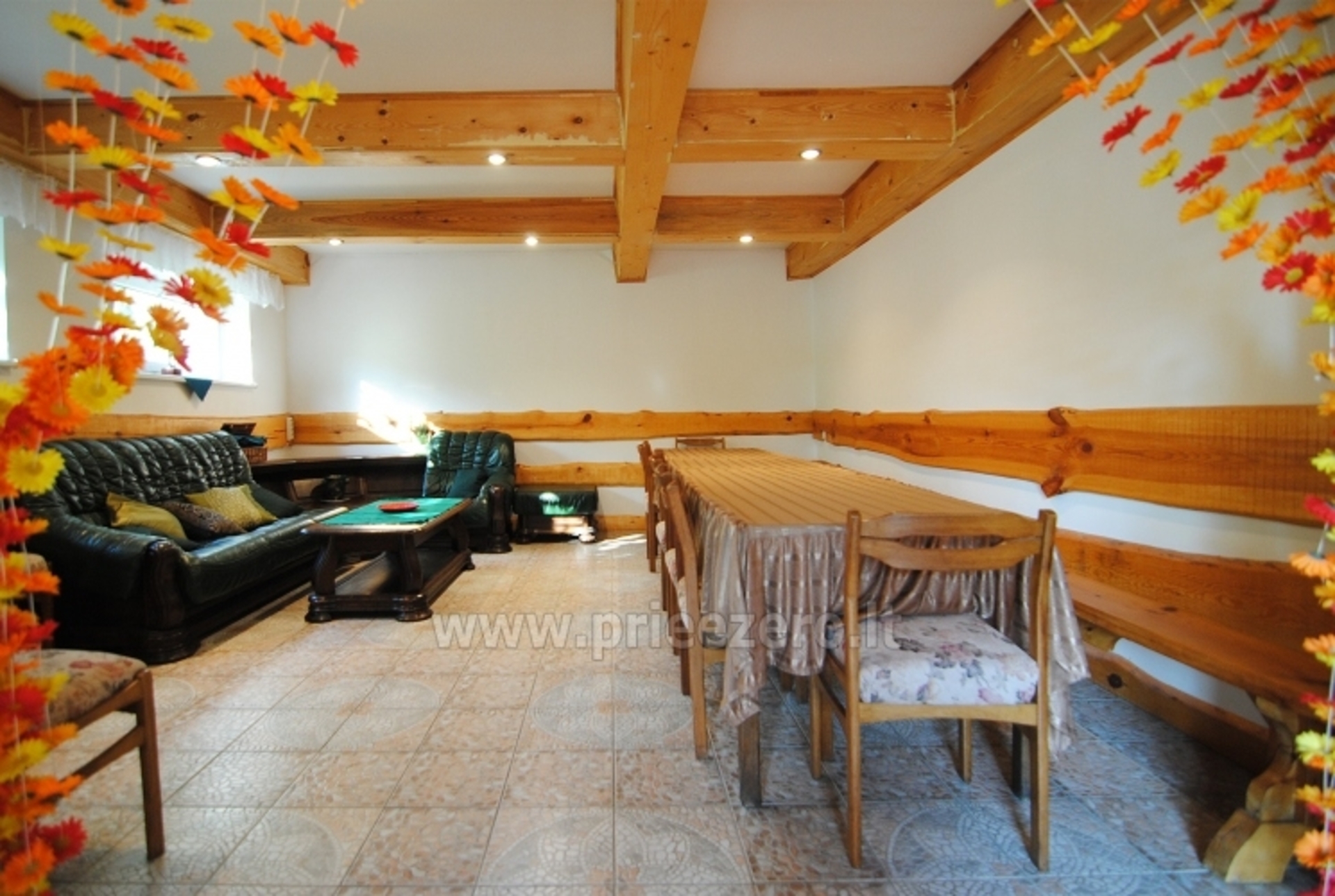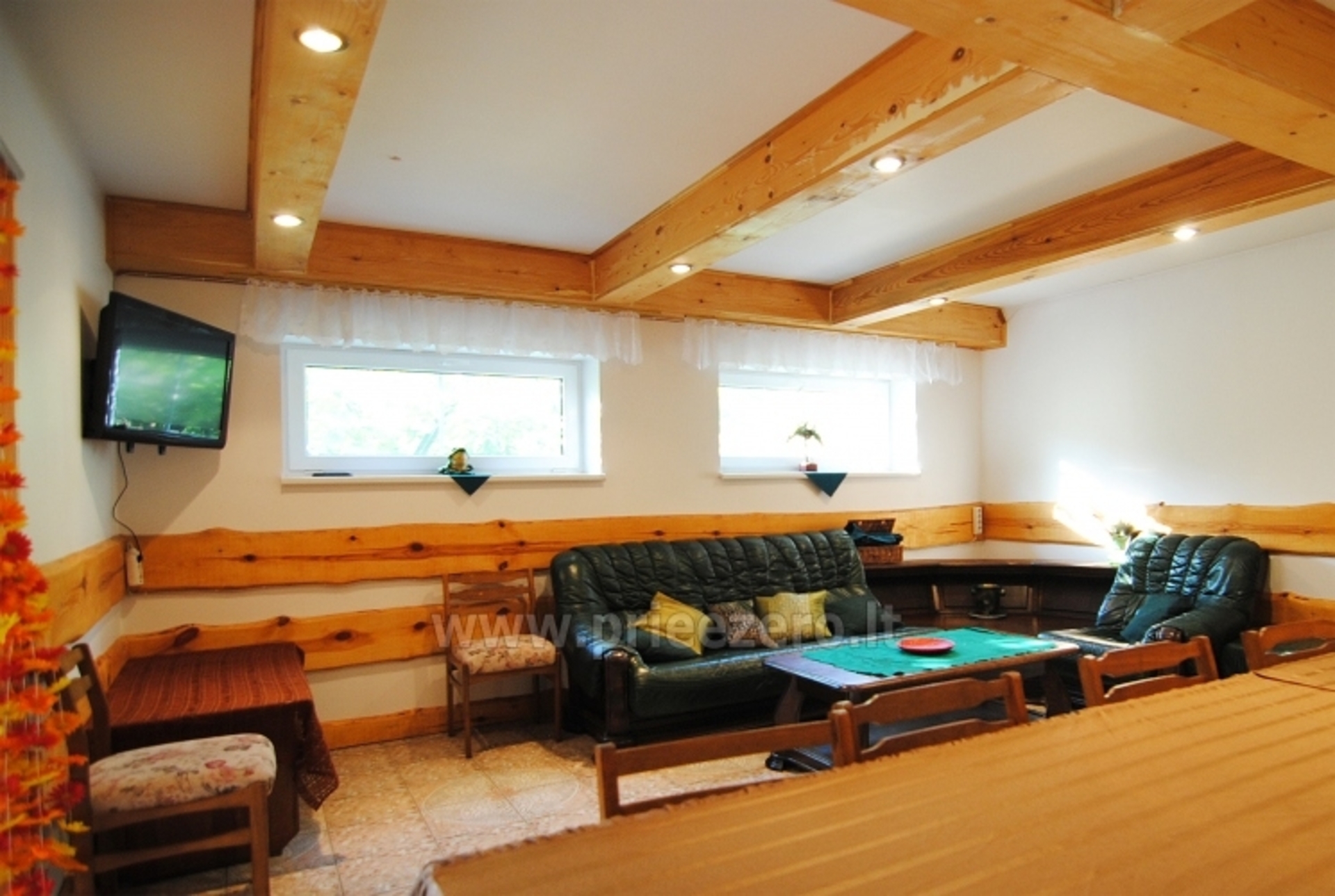 4 комнаты, 2 кухни, 4 туалета с душем, телевизор в комнатах. В доме есть литовская баня, банкетный зал, винный погреб, шашечные и шахматные столы, мини-библиотека.
