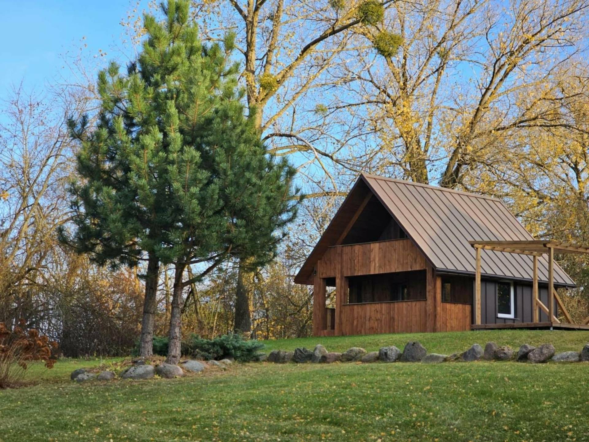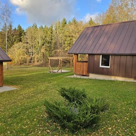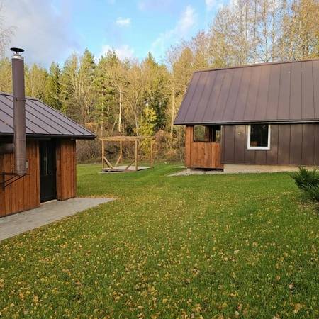Наша усадьба находится на берегу красивого озера Дуся, в региональном парке Метеляй. Приходите на рыбалку, катайтесь на лыжах, гуляйте зимой по чудесным окрестностям. Приходите летом окунуться в глубины одного из самых больших и чистых озер Литвы. Разложите паруса или спокойно сядьте в лодку. Чистая вода и неглубокий берег будут напоминать море, только здесь спокойнее, тише и теплее. Особенно весело с детьми. У вас два шестиместных коттеджа со всеми удобствами и десятиместный домик. Принимаем круглый год. Есть баня, камин, детские площадки, лодка и прочие дачные радости.