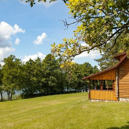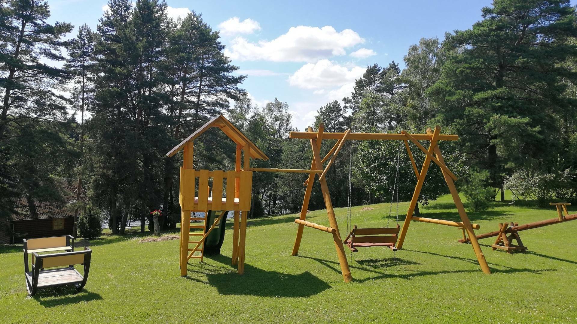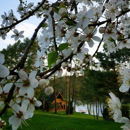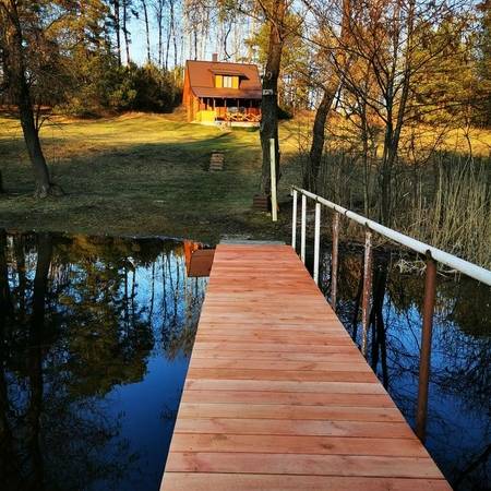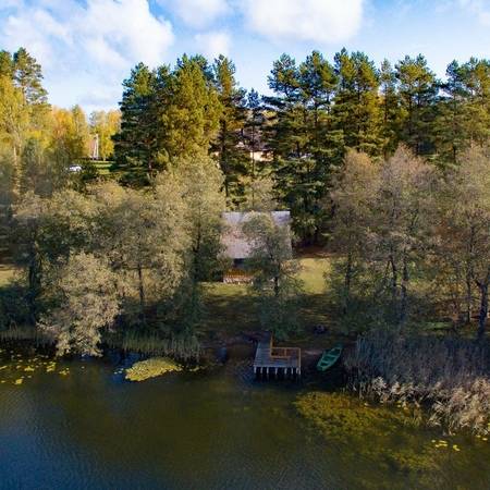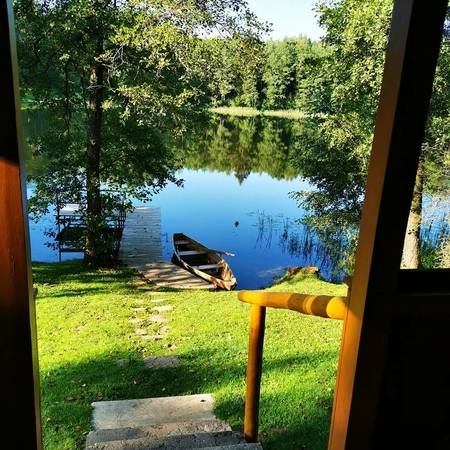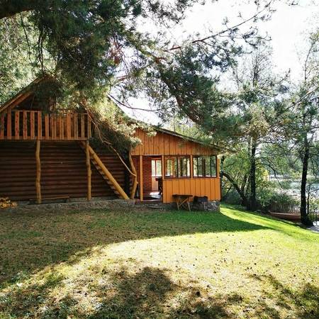В просторном дворе усадьбы есть три отдельных бревенчатых домика с отдельными мини-кухнями, вся необходимая техника и дворики для обслуживания отдыхающих. В каждом коттедже есть пешеходный мостик, лодка, мангал. Для рыбаков - два отдельных шага. Для любителей сауны - сауна на берегу озера.
